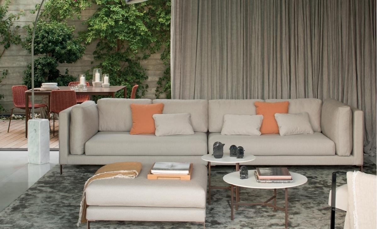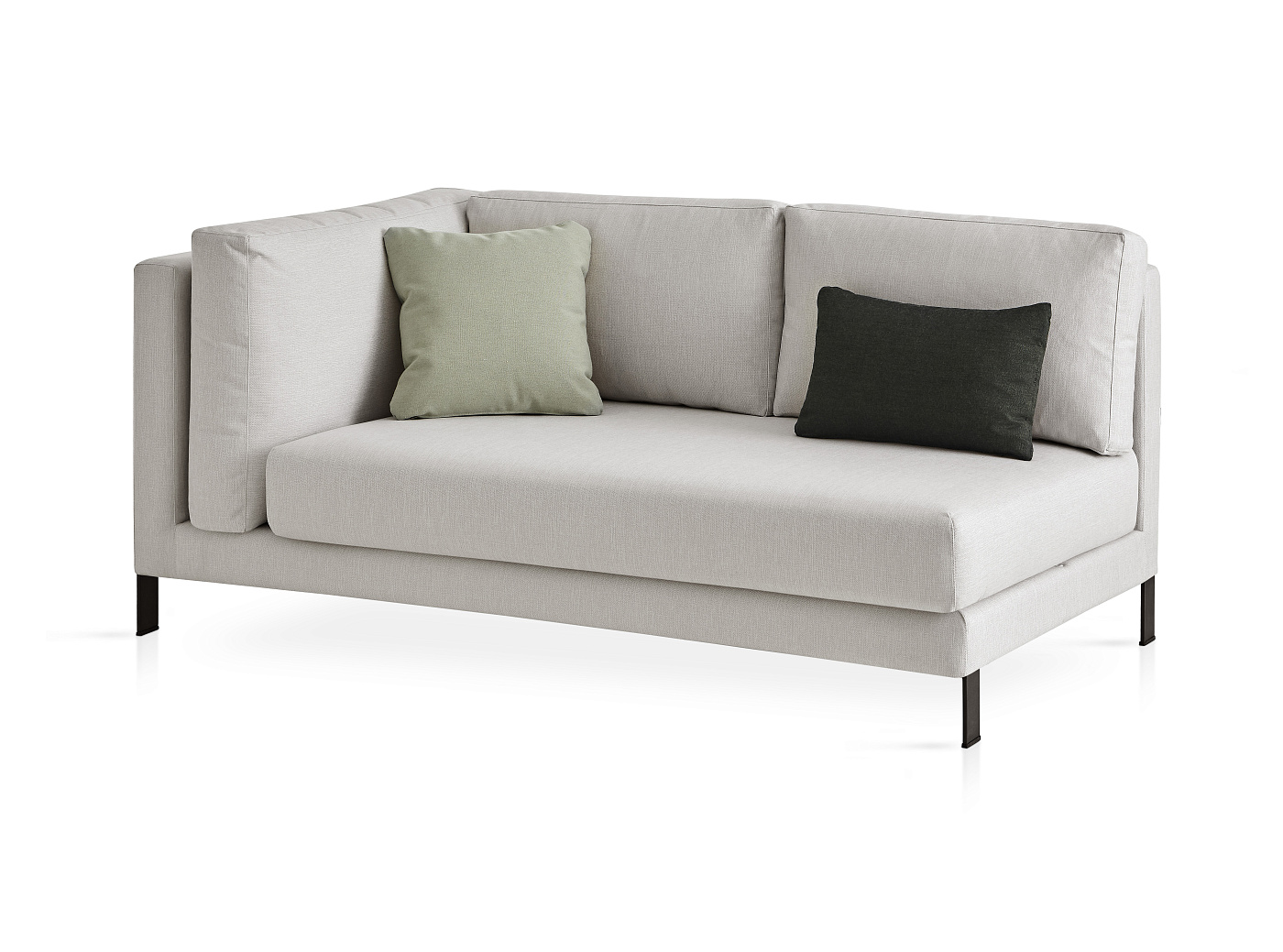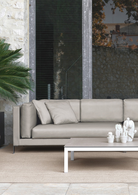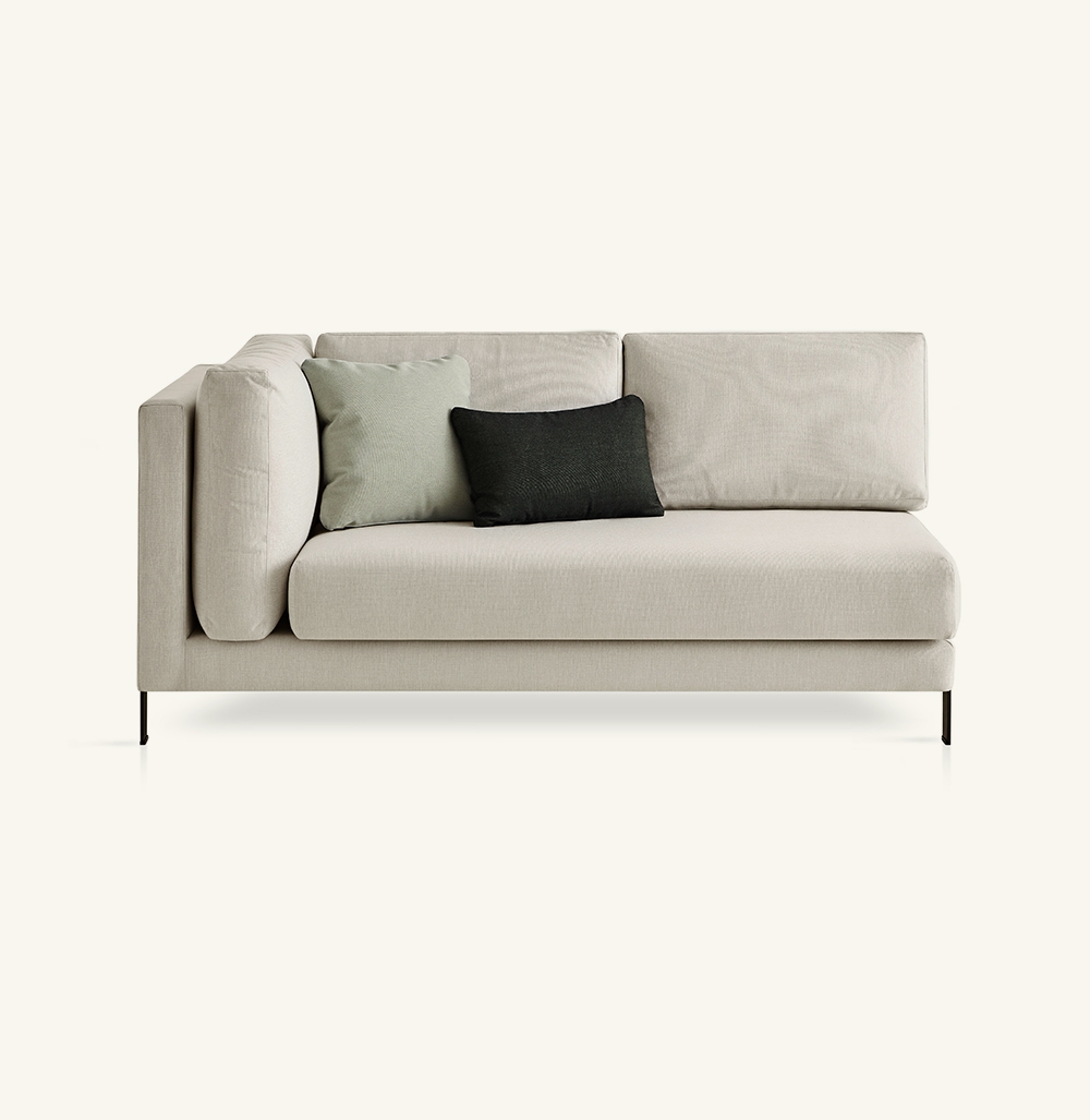 Левый боковой модуль со структурой из высокоомного алюминия, покрытого QuickDryFoam®. Возможность выбрать из каталога широкого спектра технических тканей, полностью подходящих для наружного использования. Ножки из нержавеющей стали.
