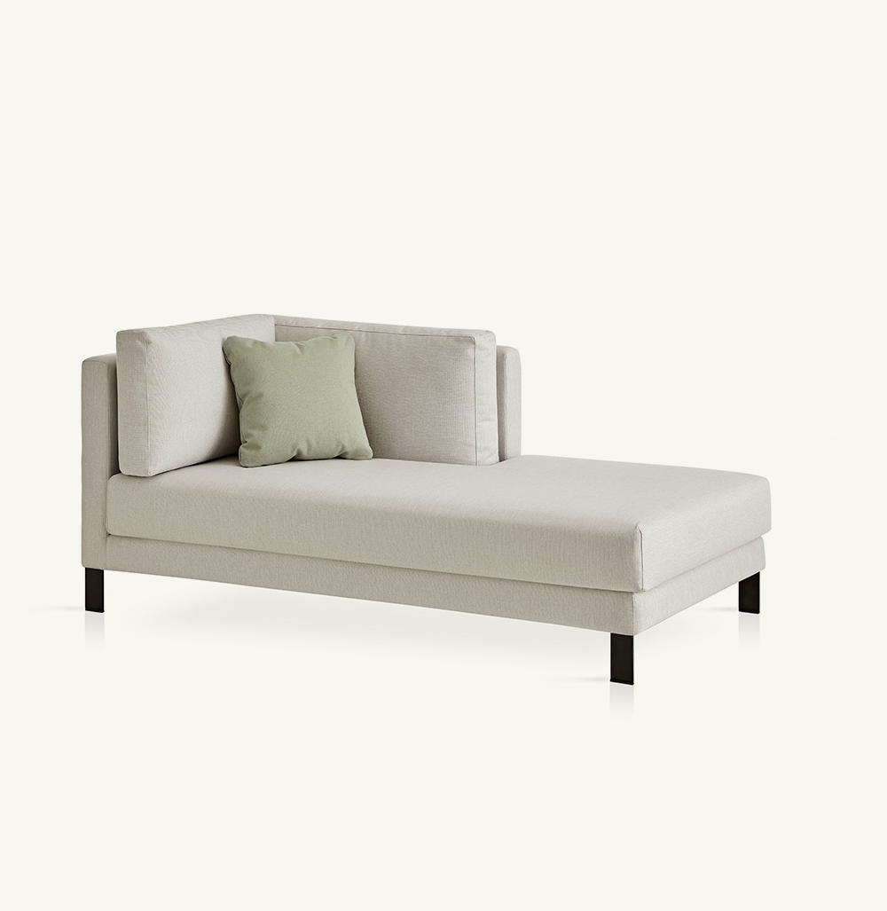 Шезлонг с конструкцией из высокопрочного алюминия, покрытого QuickDryFoam®. Возможность настройки с помощью широкого спектра технических тканей, полностью подходящих для наружного использования. Ножки из нержавеющей стали.