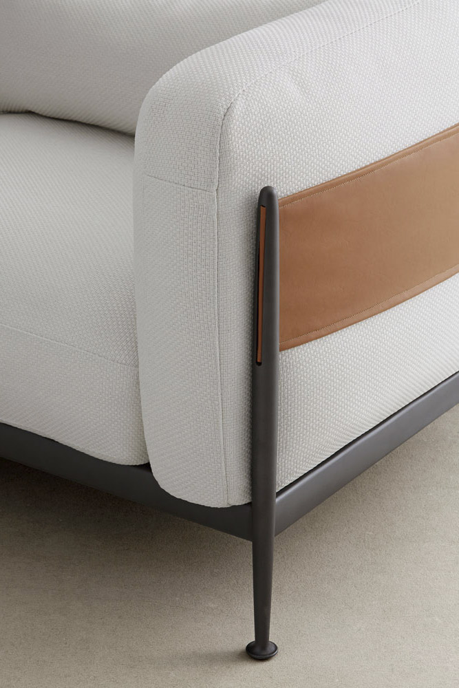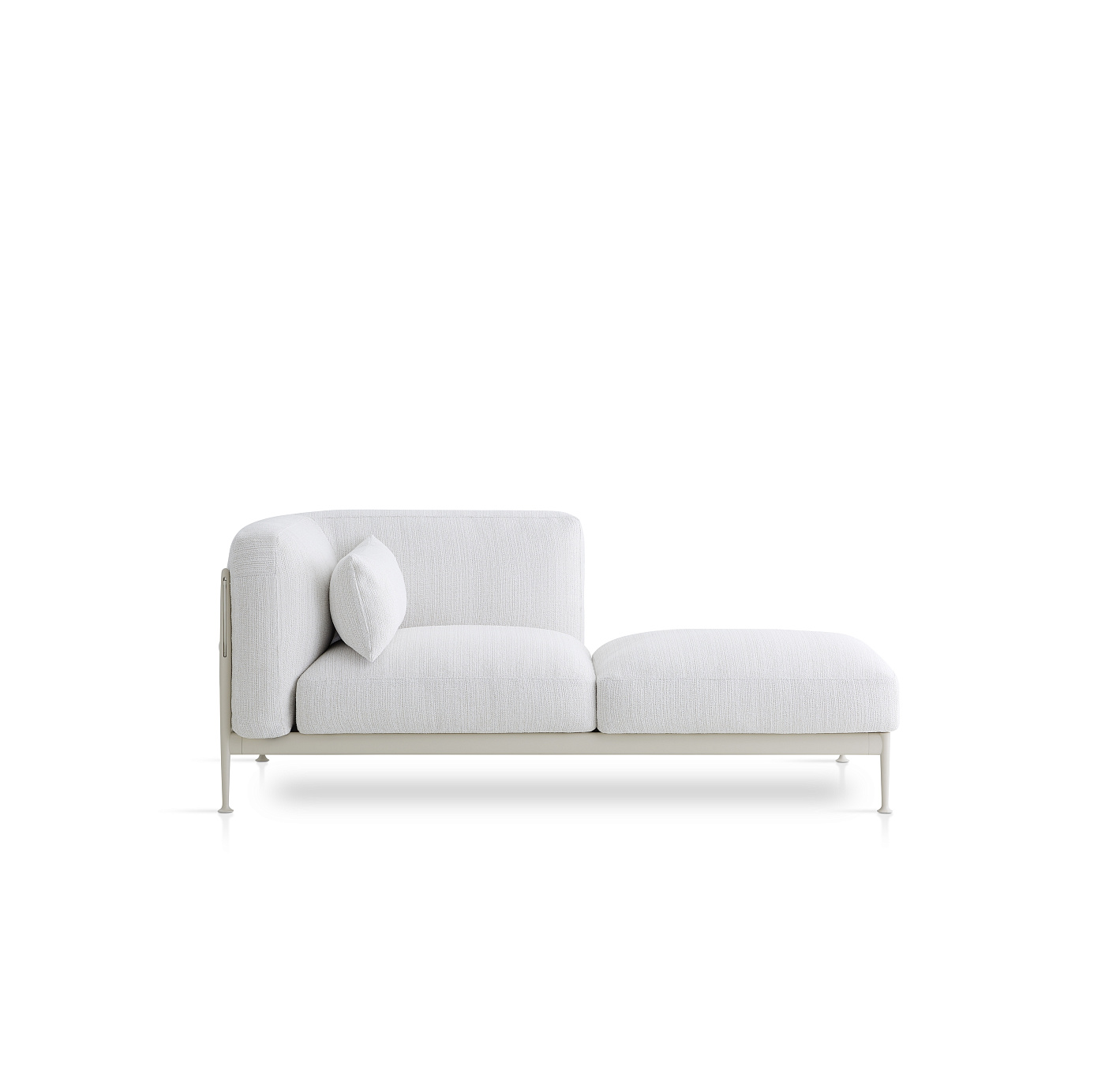 Модуль с конструкцией из высокопрочного алюминиевого профиля и ножками из литого алюминия, покрытого полиэфирной порошковой краской. Ремень из технической ткани Zander. Возможность персонализации благодаря широкому выбору технических тканей, полностью подходящих для использования на открытом воздухе.