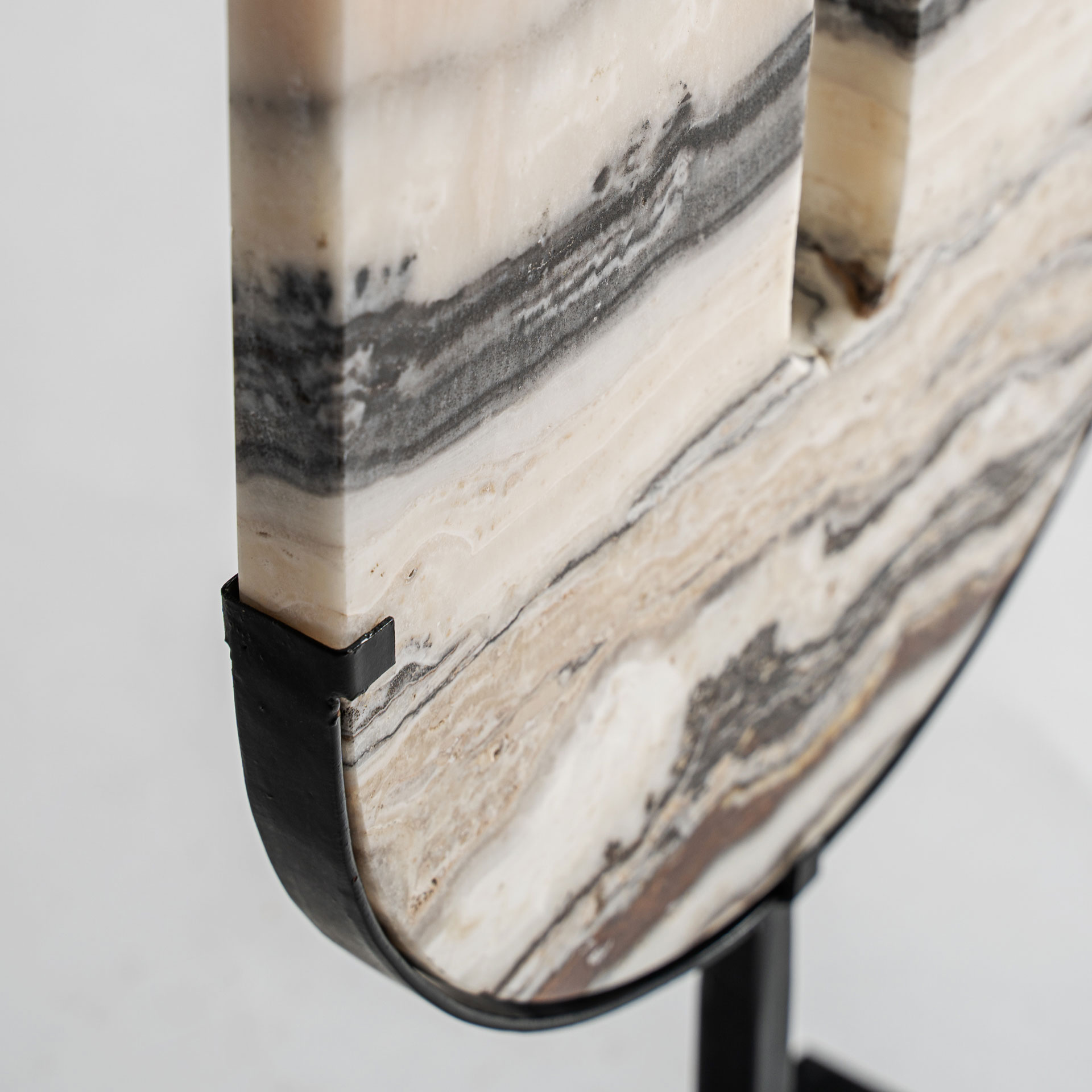 Декоративная фигура в скандинавском стиле, выполненная из нейтрального мрамора в сочетании с черным железом. Изделие можно разобрать.