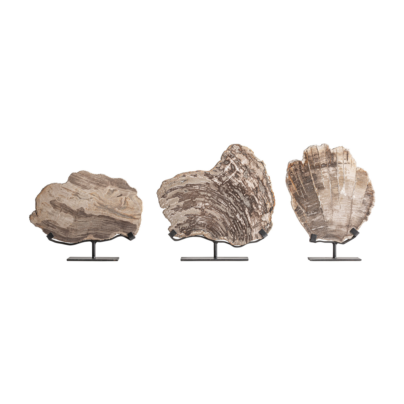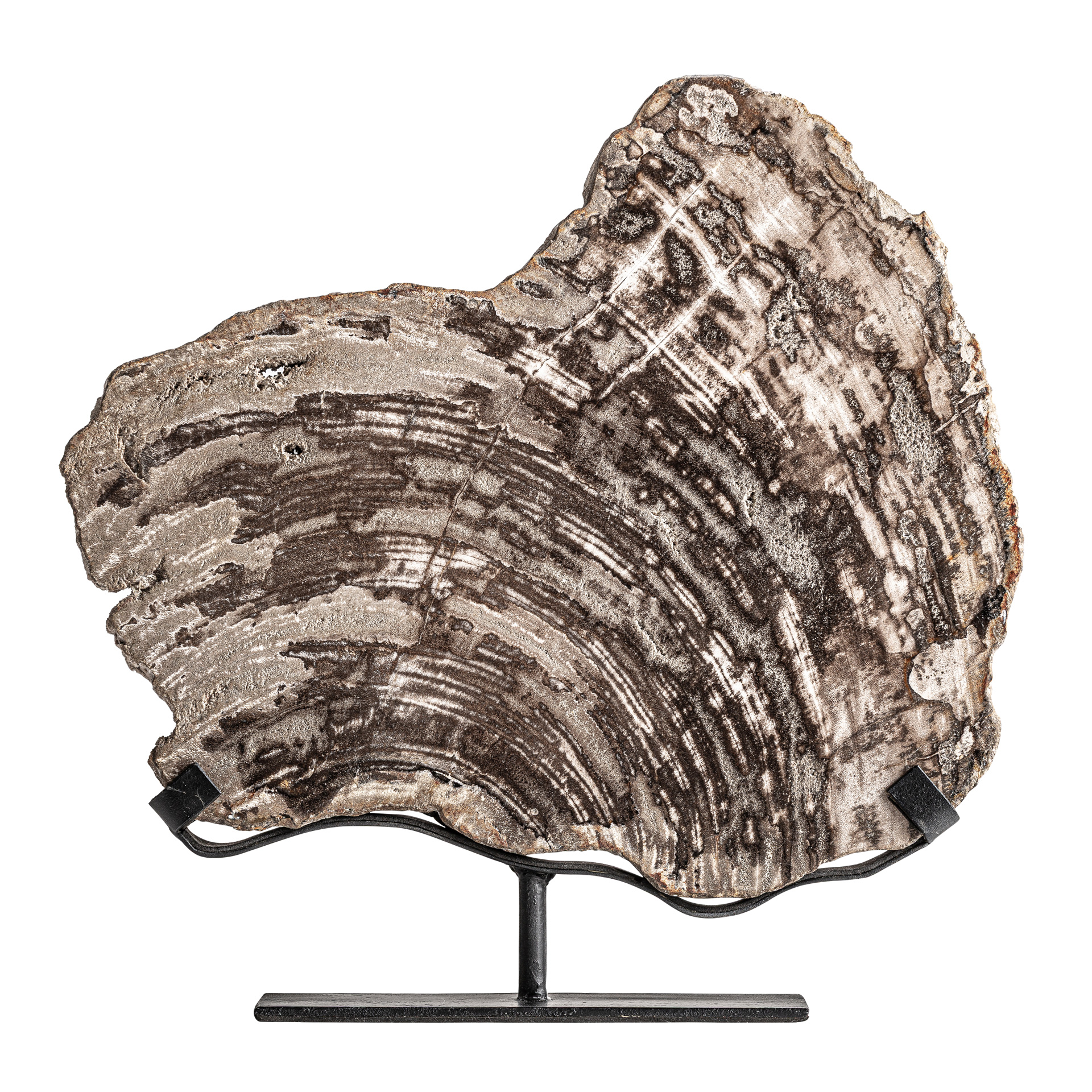 Декоративная фигурка, выполненная из окаменевшей древесины серого цвета в сочетании с железом. Ширина: 30 см, Глубина: 7 см, Высота: 35 см