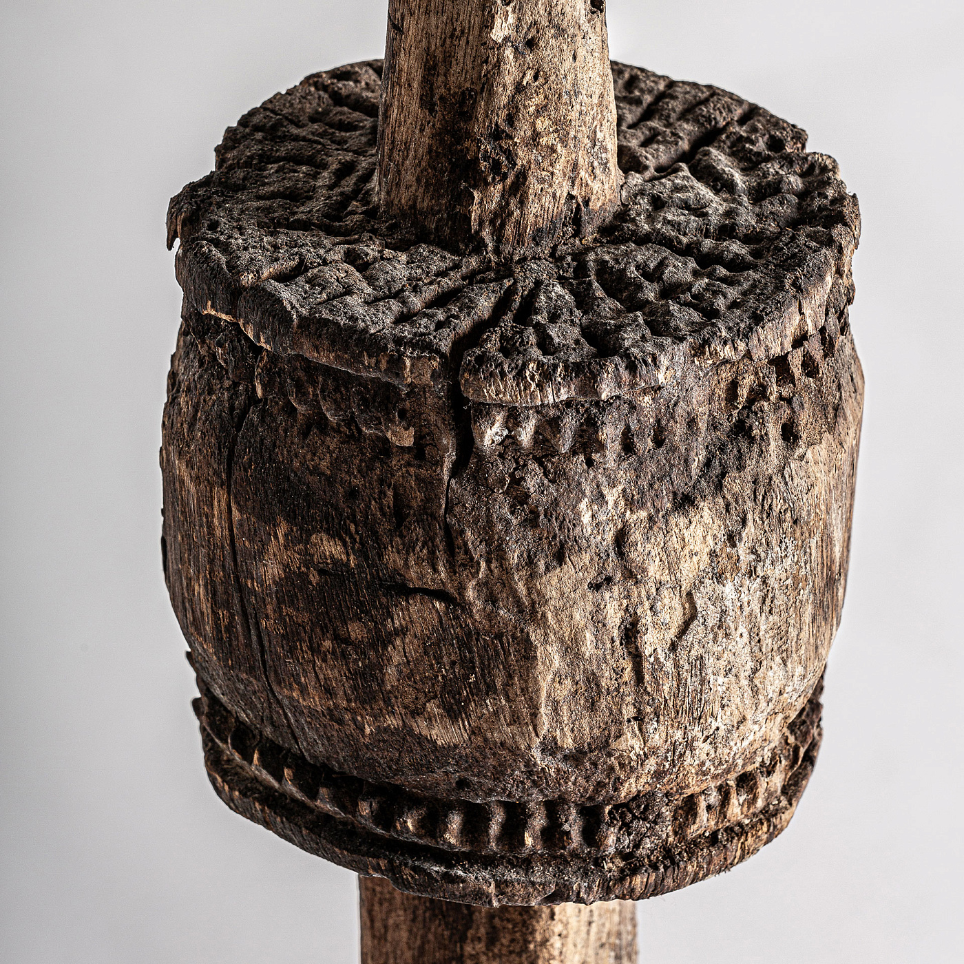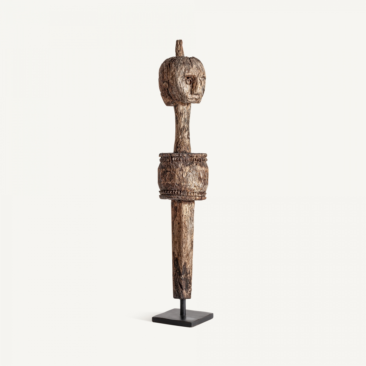 Фигурка в этническом стиле, изготовленная из коричневого мангового дерева с состаренной отделкой в сочетании с черным железом.