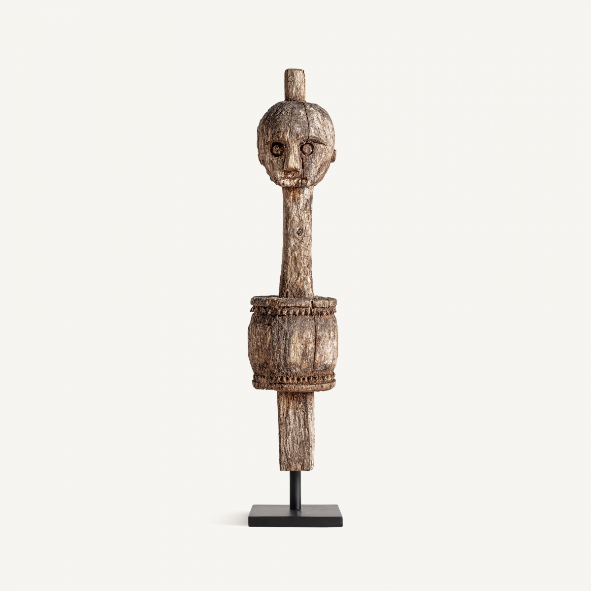 Статуэтка в этническом стиле, выполненная из коричневого мангового дерева с состаренной отделкой в сочетании с черным железом.