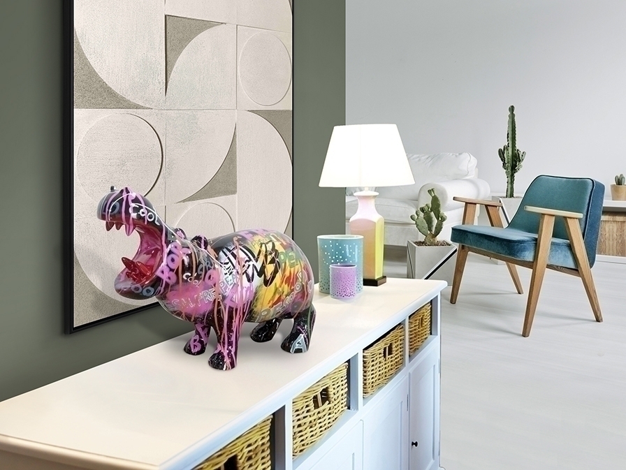Фигурка бегемота, выполнена из полирезины. Декор: Граффити.