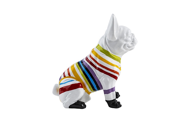 Фигурка французского бульдога небольшого размера, изготовлена из смолы. Оформление: Белая краска с цветными полосками.