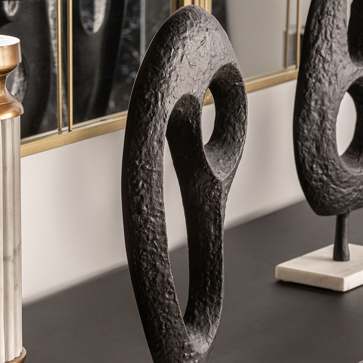 Скульптура MESSIER в черно-белом современном стиле. Изготовлен из алюминия в сочетании с мрамором.