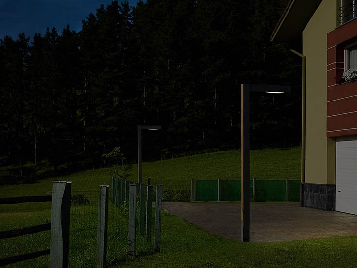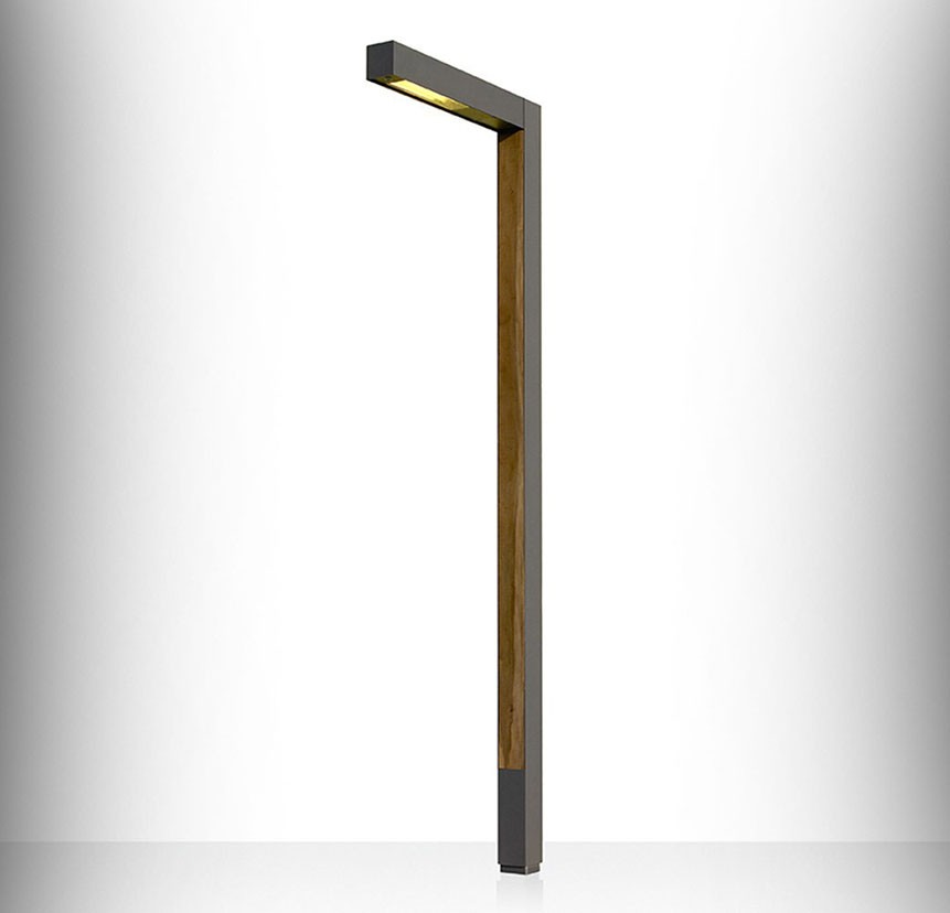 Уличный светодиодный светильник из оцинкованного металла, окрашенного в серый цвет с фактурной матовой металлической отделкой, обшитой с двух сторон листами натурального дерева ипе. Также доступен в кортеновской окраске без содержания древесины. Доступен в двух вариантах высоты: 300 или 400 сантиметров. Оба состоят из колонны и одного или двух осветительных кронштейнов, расположенных на одинаковой или разной высоте, в зависимости от версии.