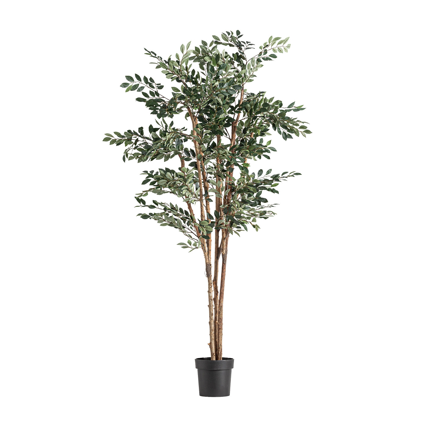 Фикус в современном стиле, изготовленный из зеленого полиэстера в сочетании с коричневым полиэтиленом и коричневой древесиной. Складное изделие. Ширина: 90 см, Глубина: 90 см, Высота: 210 см