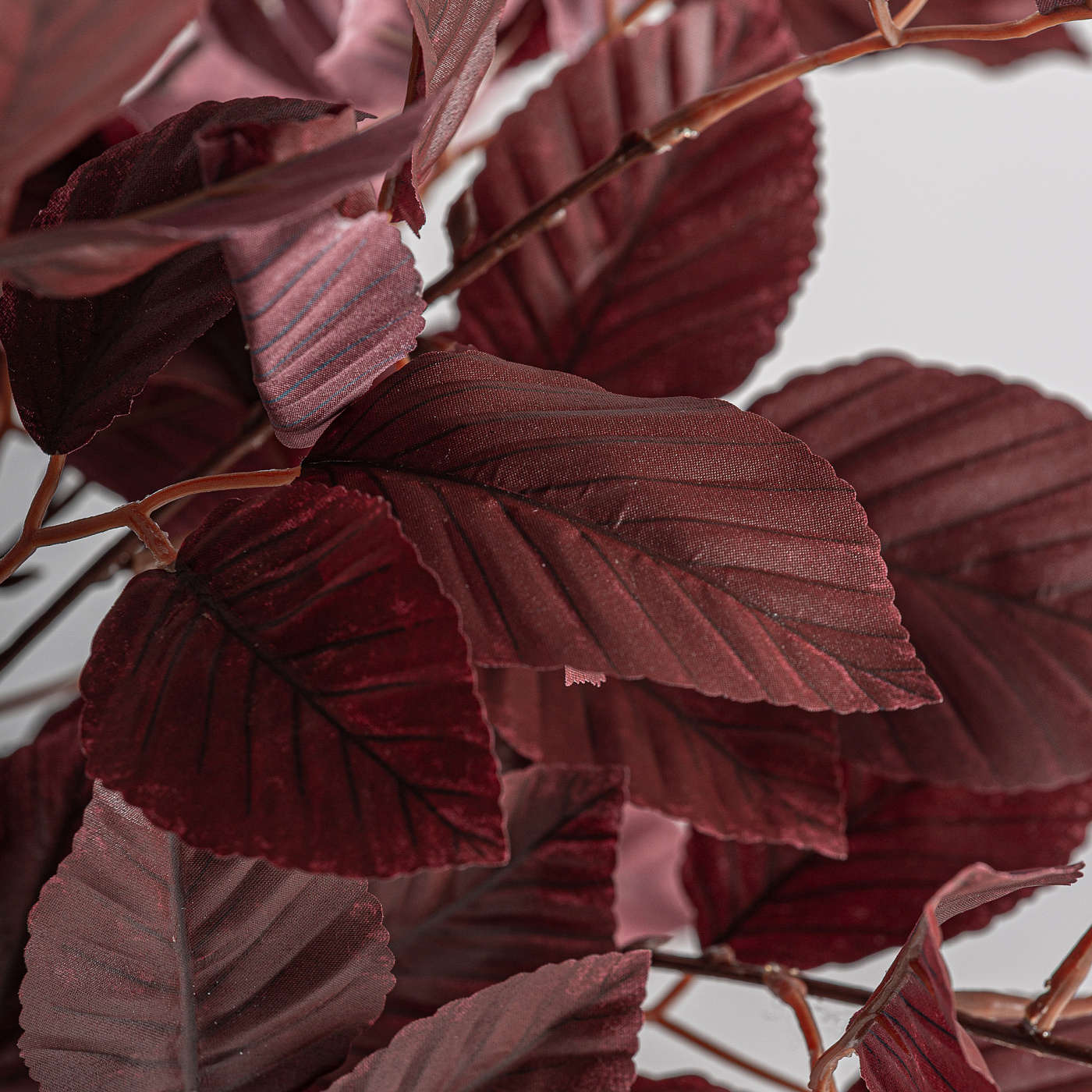 Классическая буковая елка, выполненная из темно-красного полиэстера в сочетании с черным полиэтиленом и черным цементом. Ширина: 70 см, Глубина: 70 см, Высота: 148 см
