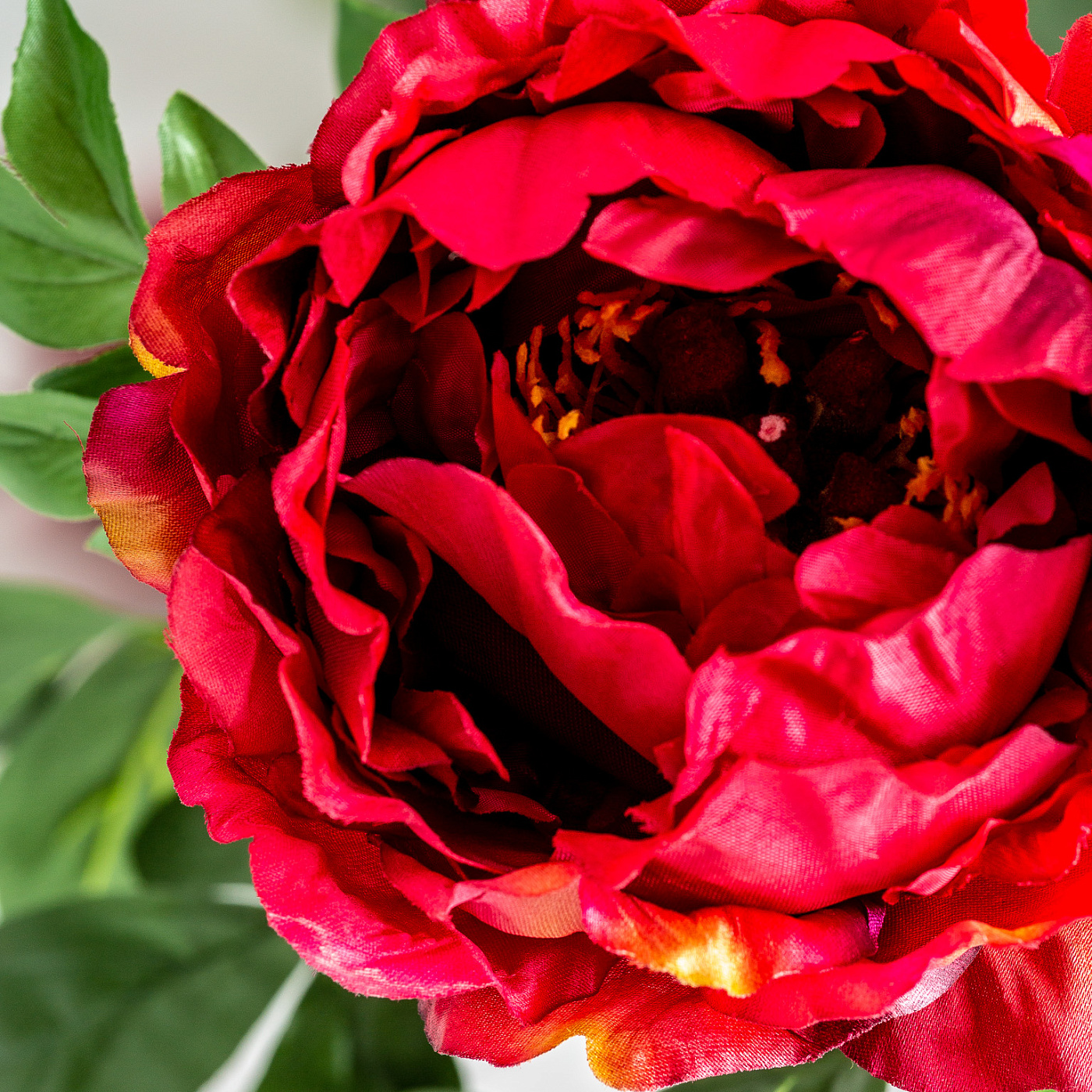 Цветок пиона в красном классическом стиле. Изготовлен из пластика в сочетании с полиэстером.
