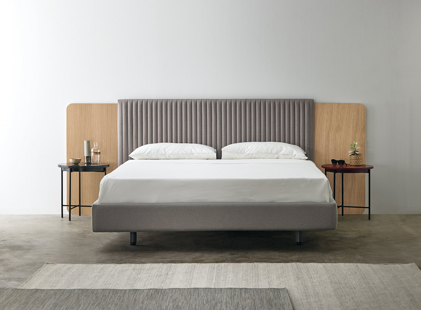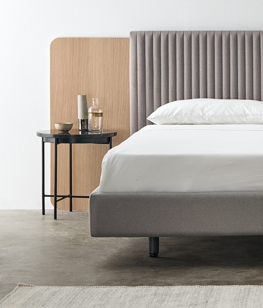 Изящество изголовья Land сочетается с мечтательными воспоминаниями о пашне, ритмические нюансы которых материализуются в рельефах и складках. Деревянная конструкция с хорошо продуманными пропорциями обрамляет обе стороны обивки, словно архитектурный фасад. Двойственность, в которой геометрия ландшафта и архитектура концептуально объединяются в столь же простом дизайне, вызывает воспоминания.