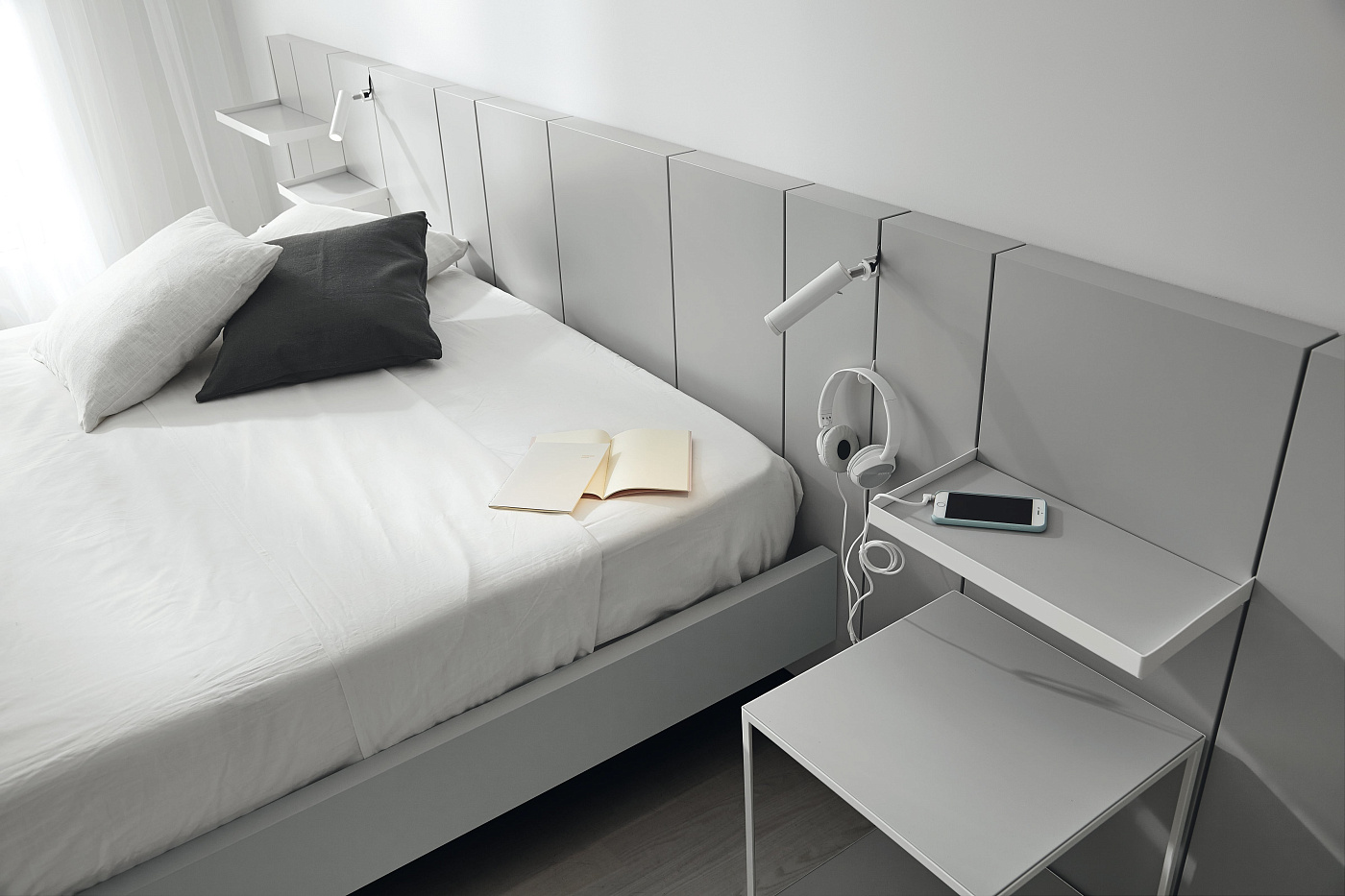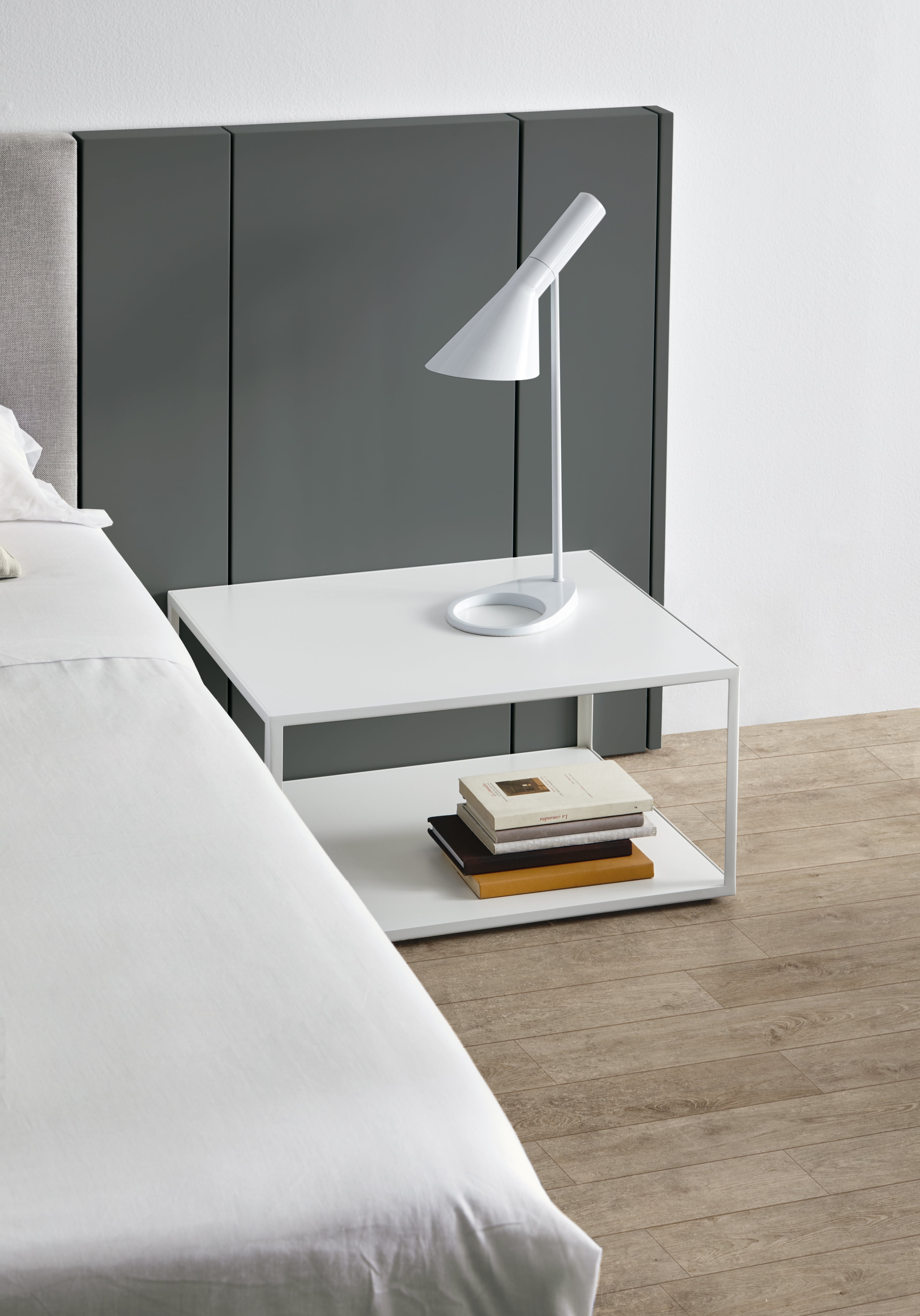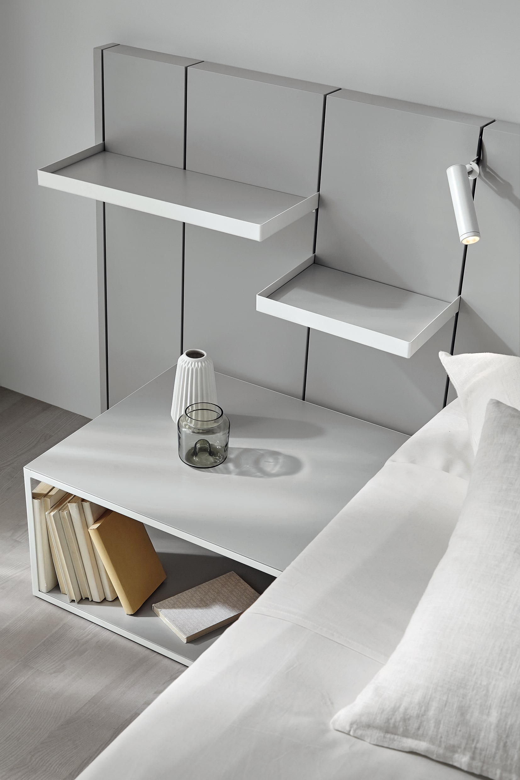 Его уникальный дизайн делает его идеальным для размещения ряда различных аксессуаров на разной высоте; лампа для чтения, крючок для подвешивания предметов и подносы разных размеров. Среди прикроватных тумбочек, созданных для этой коллекции, есть одна, встроенная в изголовье в виде небольшой полки. Благодаря всем этим функциям вы можете создать свое собственное оригинальное изголовье, а также персонализировать стороны своей кровати.
