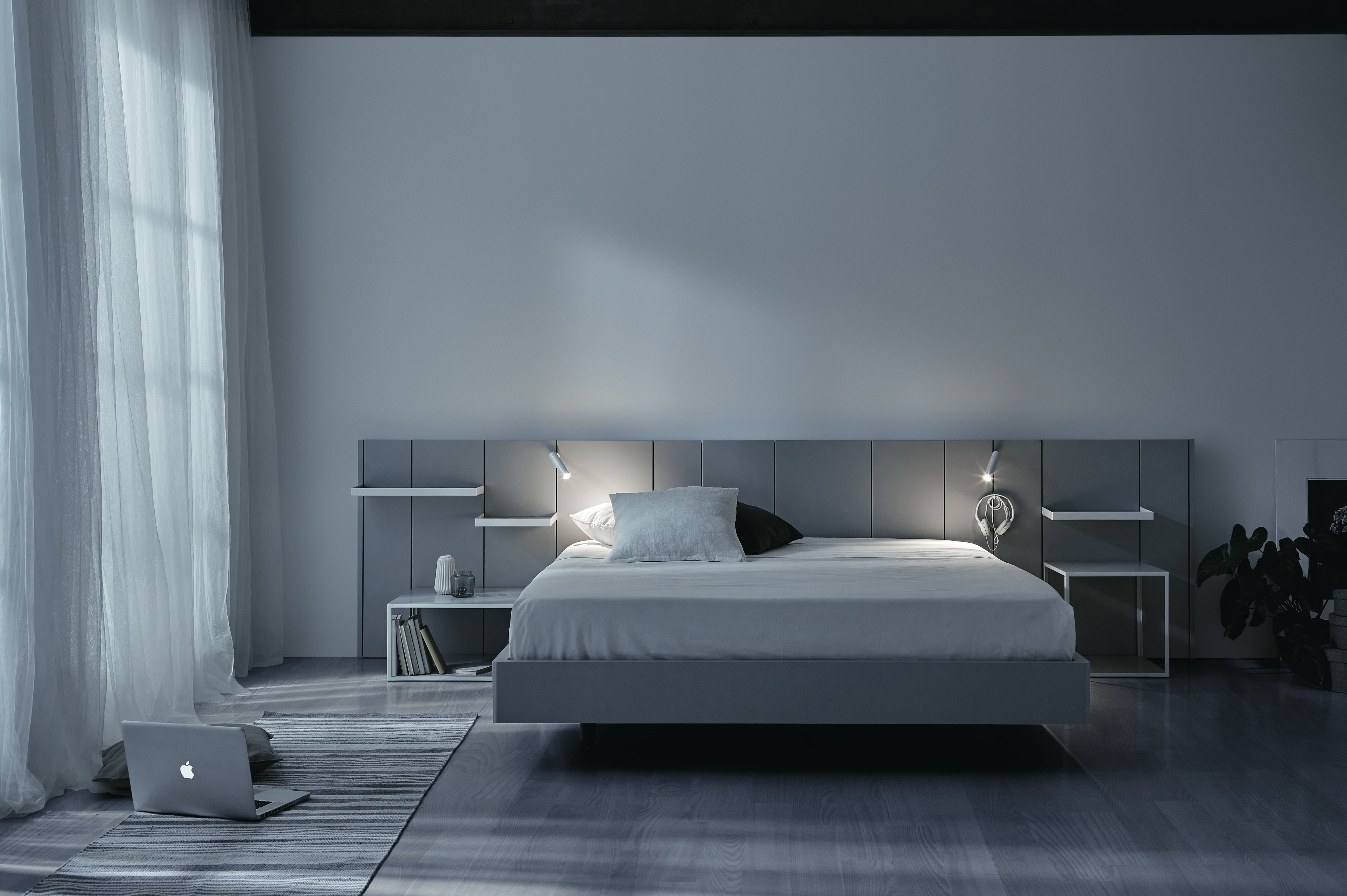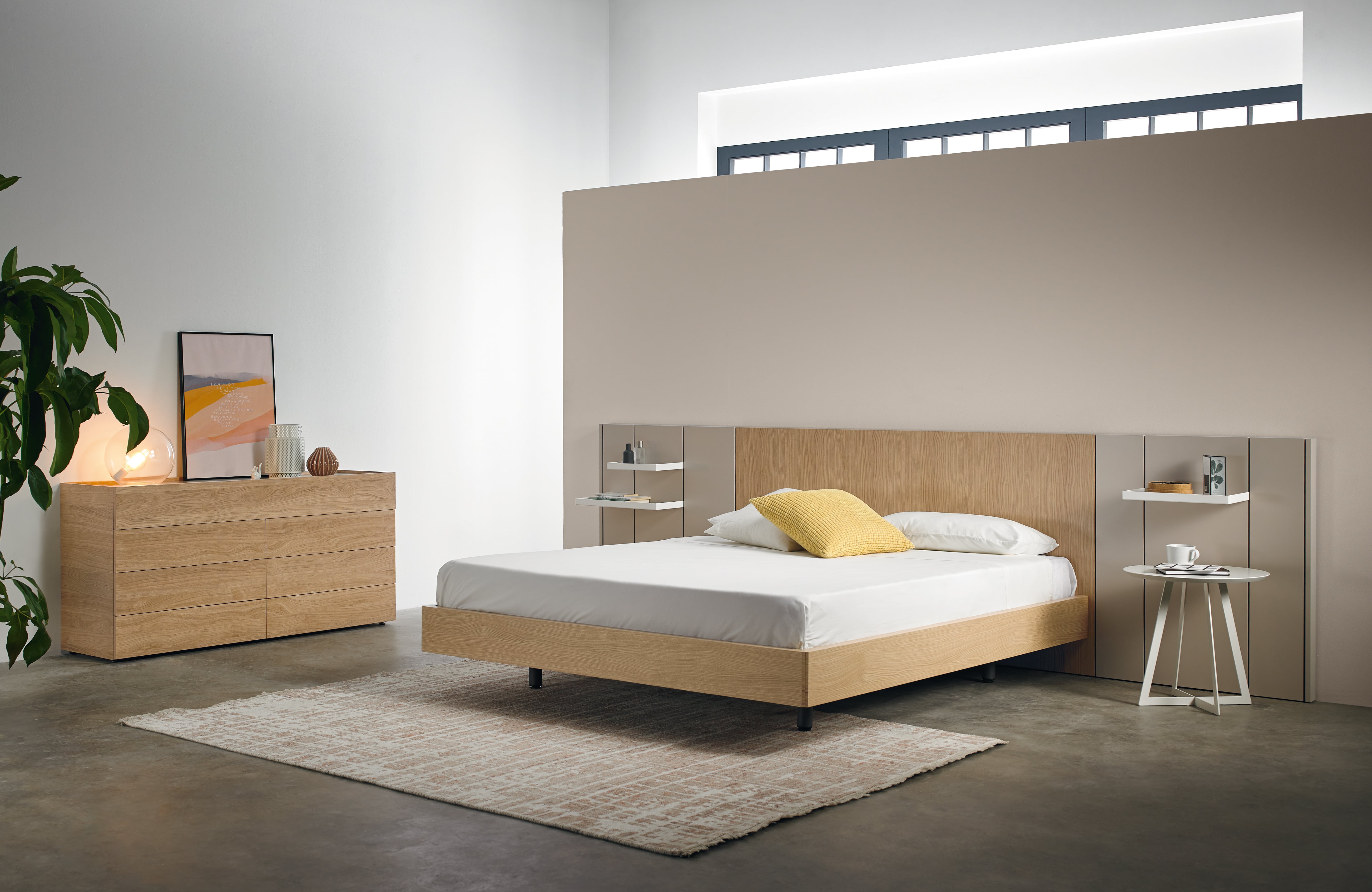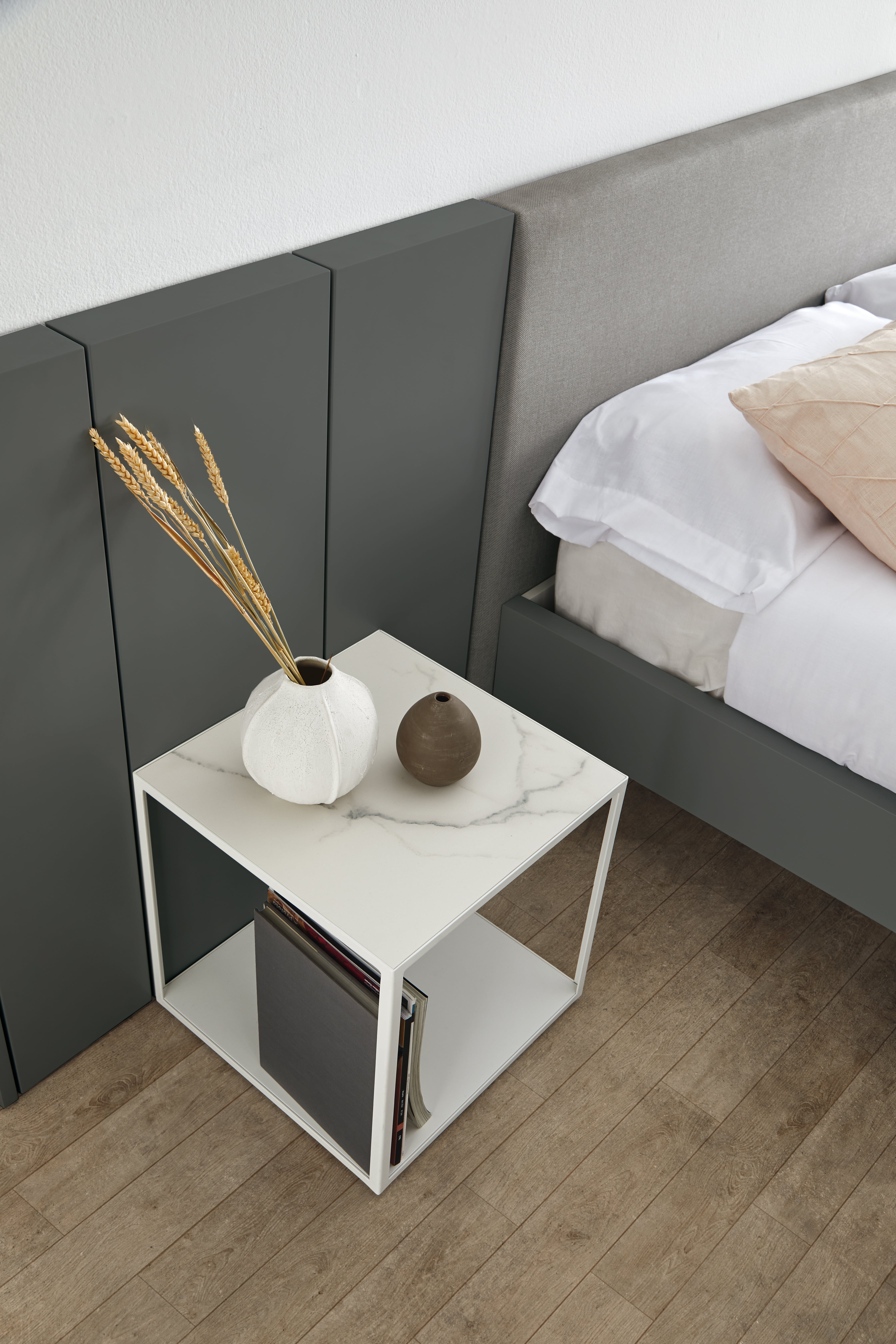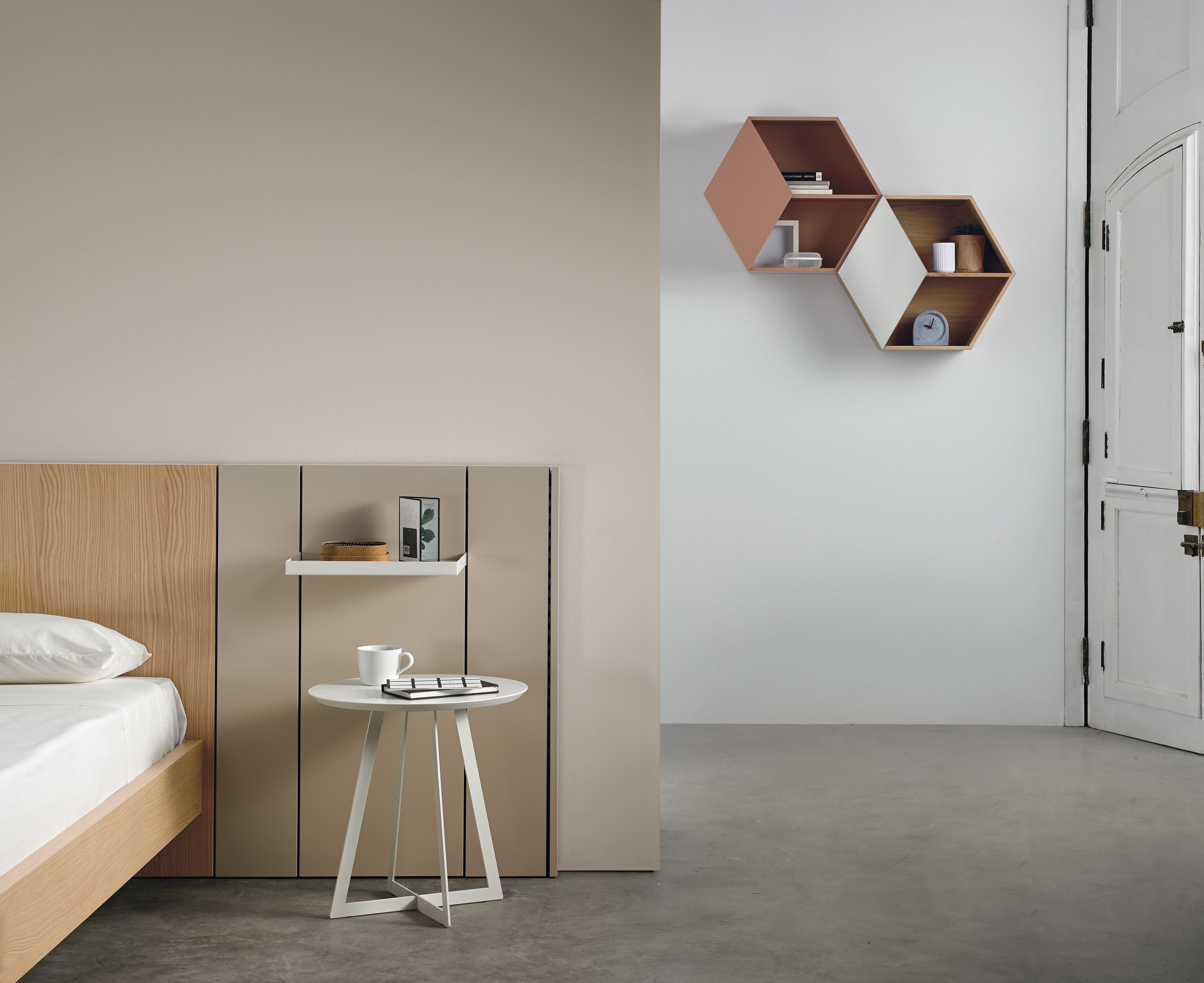 Его уникальный дизайн делает его идеальным для размещения ряда различных аксессуаров на разной высоте; лампа для чтения, крючок для подвешивания предметов и подносы разных размеров. Среди прикроватных тумбочек, созданных для этой коллекции, есть одна, встроенная в изголовье в виде небольшой полки. Благодаря всем этим функциям вы можете создать свое собственное оригинальное изголовье, а также персонализировать стороны своей кровати.
