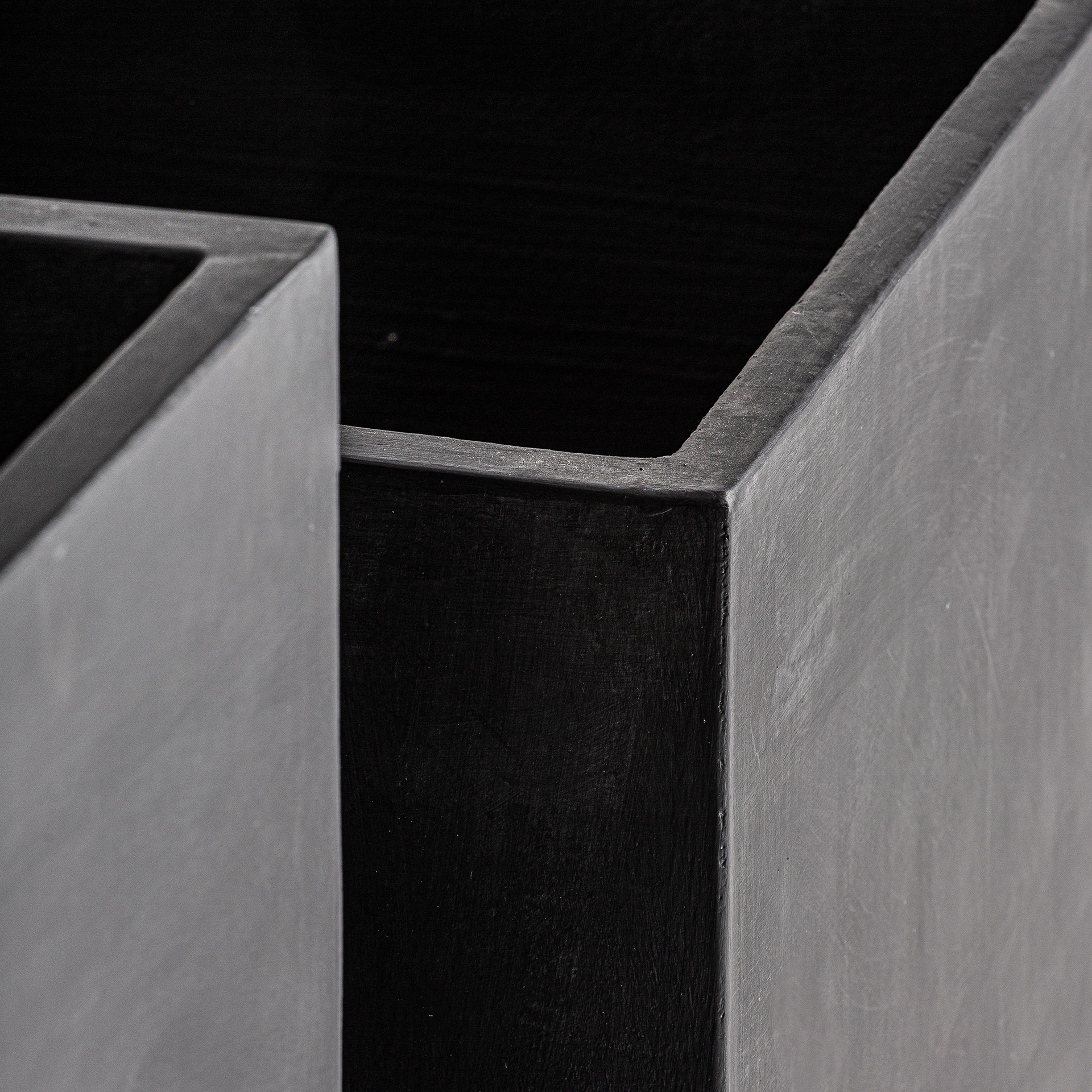 Кашпо в современном стиле j/2, изготовлено из черной терракоты. Большая ширина: 70 см, Глубина: 70 см, Высота: 70 см Маленькая ширина: 56 см, Глубина: 56 см, Высота: 56 см
