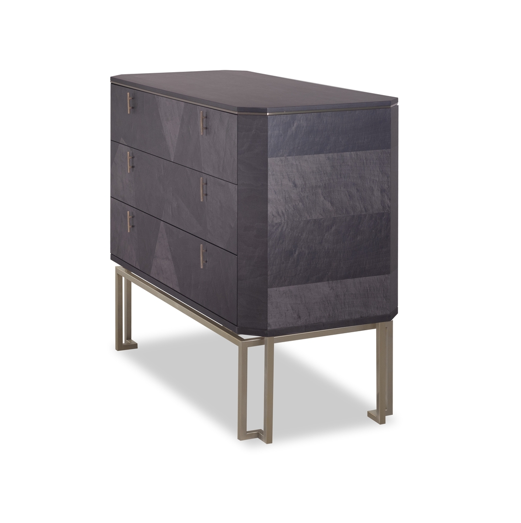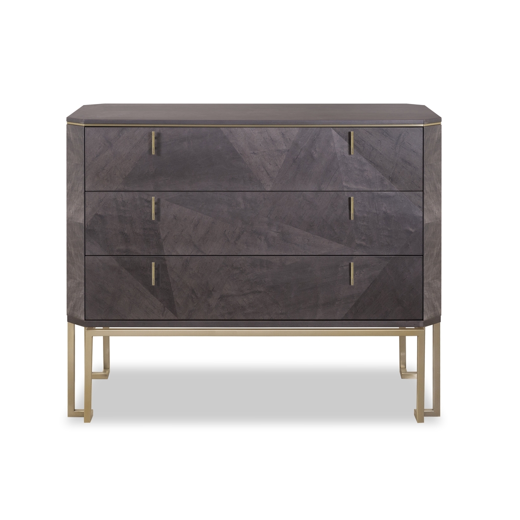В комоде Bond особое внимание уделяется геометрическим формам, которые придают пространству роскошь и стиль. Этот комод HURTADO оснащен тремя выдвижными ящиками для максимального удобства. Комод Bond доступен в различных вариантах отделки с металлическими вставками на ваш выбор.