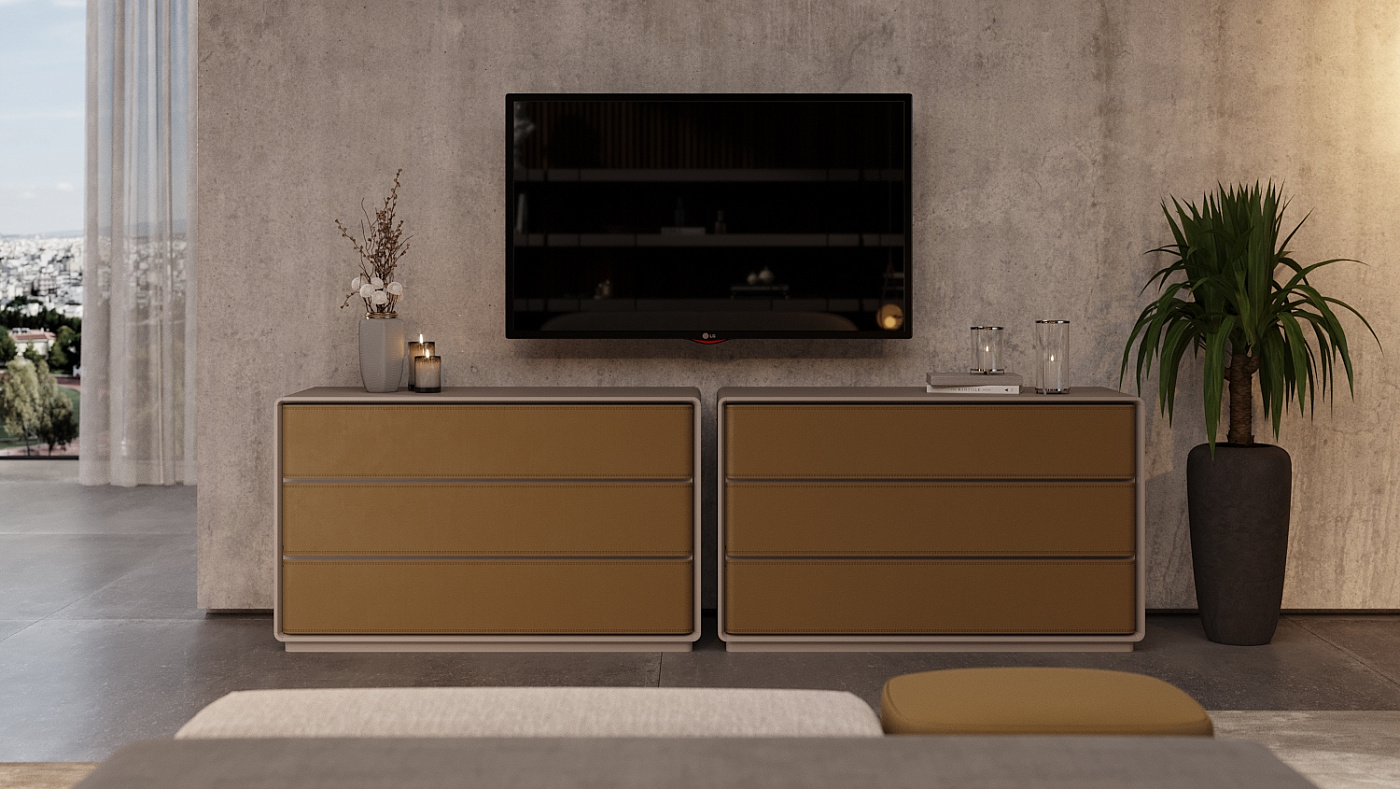 Современный дизайн Branden определяется контрастами. Воплощая характерную двойственность коллекции Metro, этот комод сочетает в себе прямые, тонкие линии с округлыми углами и холодным, чистым прикосновением лака на мягкой шероховатости кожи, что делает его универсальным решением для любой современной гостиной.