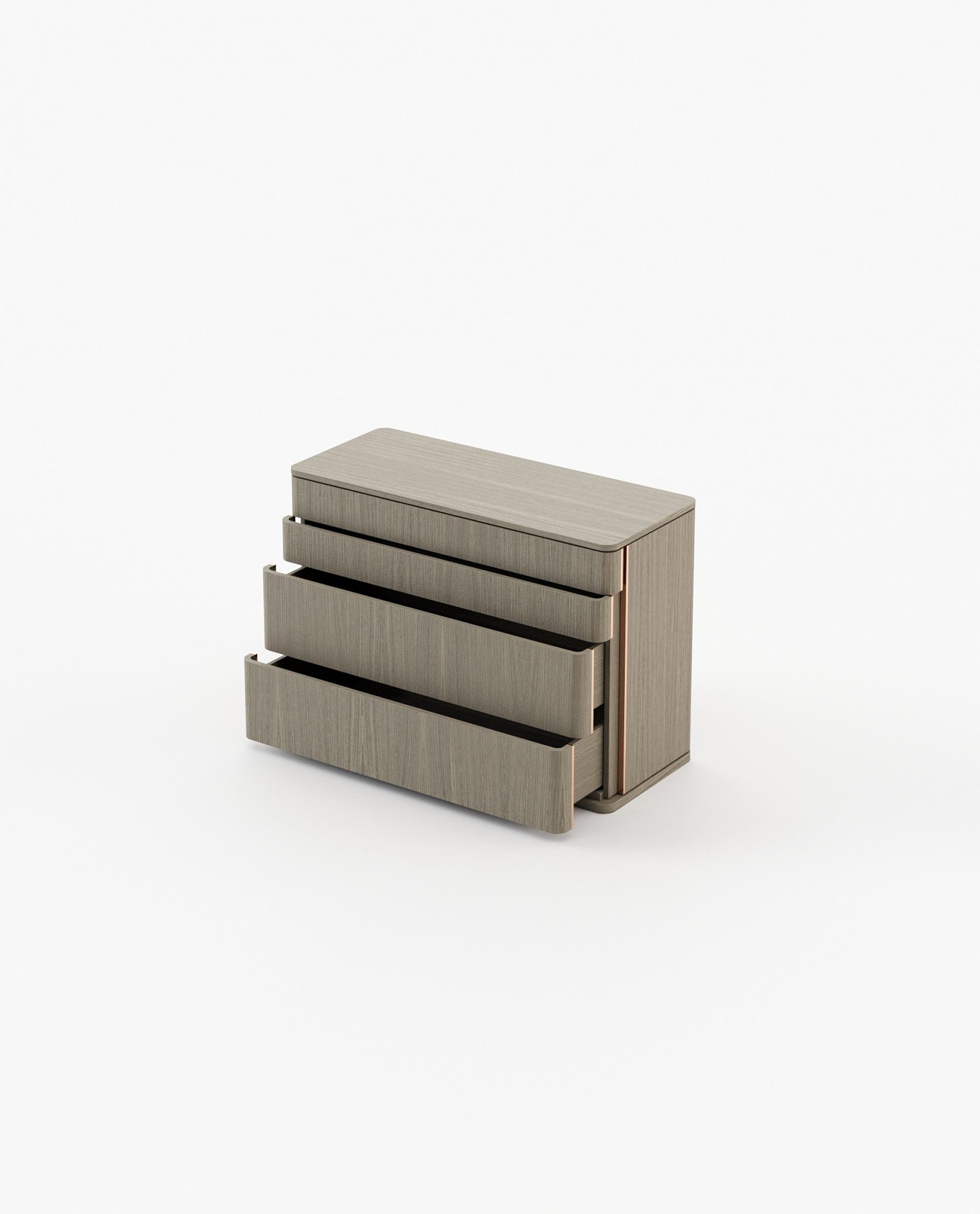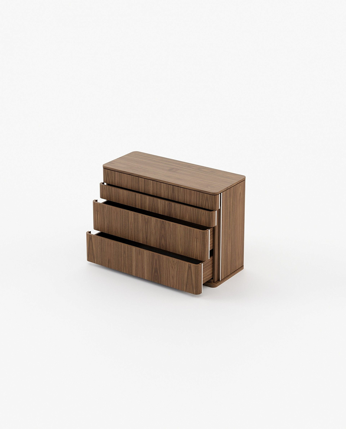 Комод деревянный с 2 ящики, и 2 ящиками, несколько более мелких, с поверхности, пересекает в двух списков из металла, которые также расположены на боковой комод и каждый из выдвижных ящиков.