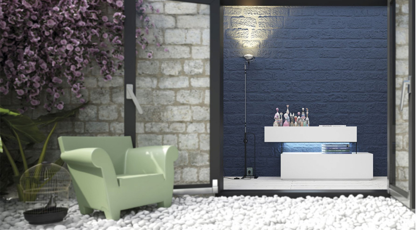 Элементы минималистского дизайна с совершенно неожиданными деталями. Уменьшение конструкции позволяет использовать стеклянную, керамическую или минеральную столешницу. Историческое изделие EMEDE, которое со временем стало любимым. В данном случае для соединения двух элементов был использован стеклянный элемент. Снабжен противоскользящими направляющими BLUM и бесшумным закрыванием.