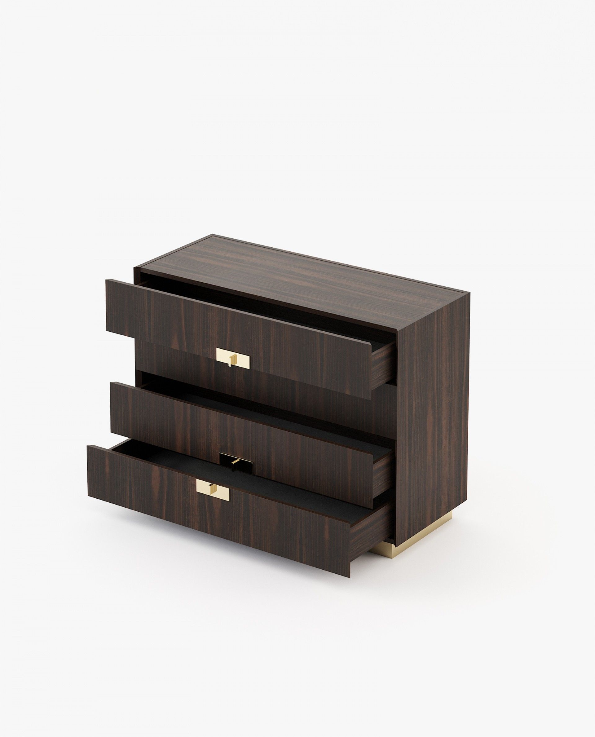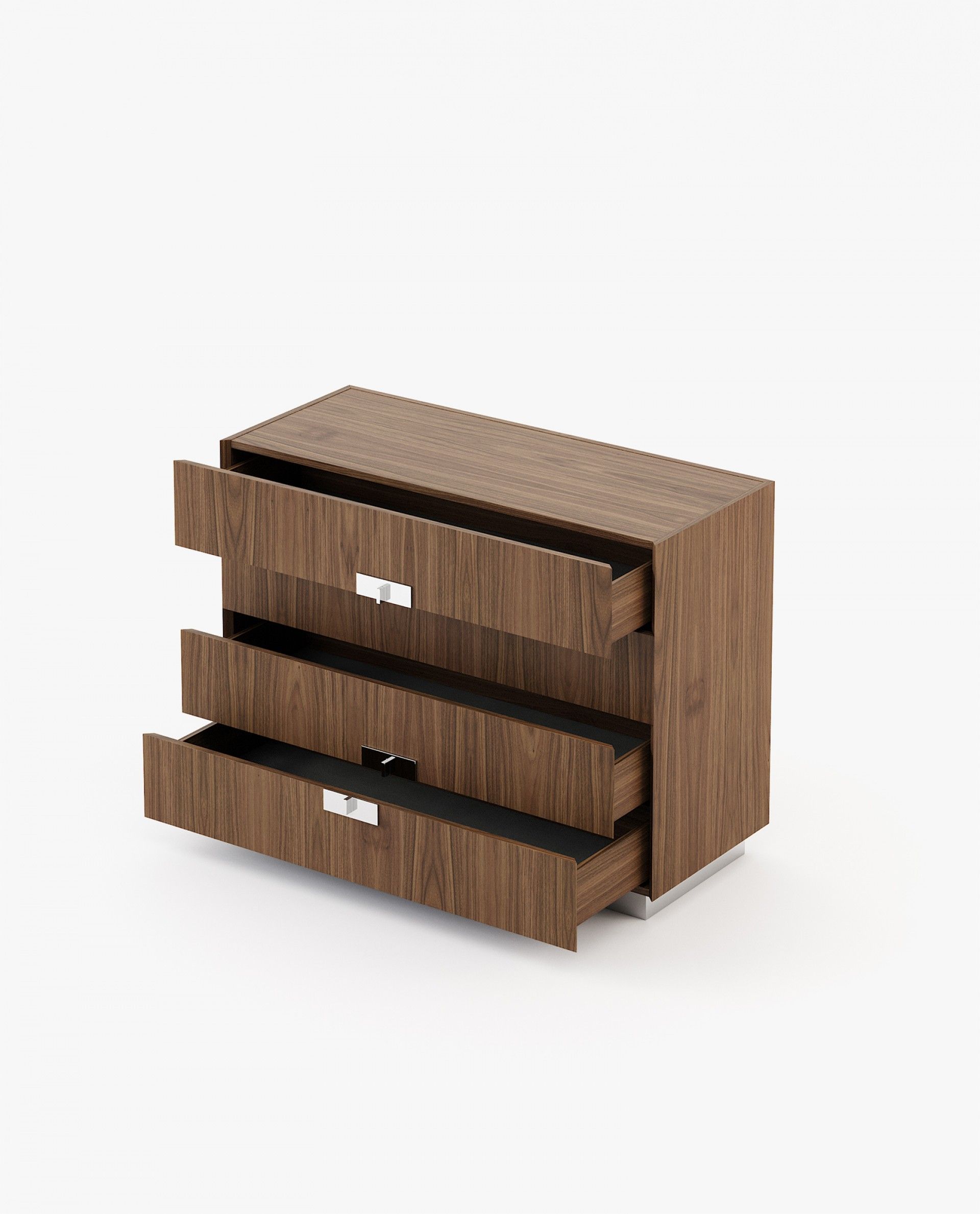 Комод деревянный, с ручками и основание металлические. Утонченный дизайн, трезвым и даже строгий, выделяется положение ручек и своими универсальные прямые линии.