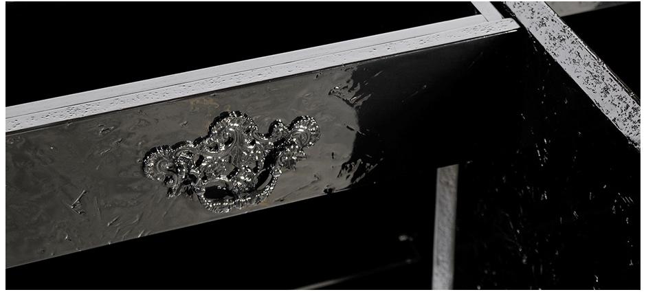 Комод Majestic от Boca do Lobo пытается рассказать нам историю города Порту, второго по величине города Португалии. Порту 20-х годов прошлого века – это постоянные встречи политиков и обсуждения новых идей. То была Прекрасная Эпоха – время писателей и художников. В память об этом компания Boca do Lobo создала комод Majestic. Это поистине уникальный предмет мебели, наполняющий окружающее пространство стилем и роскошью. Комод оборудован четырьмя дверцами. Внутри него располагаются 2 ящичка и 4 полки. Комод изготовлен из массива дерева. Его лицевую часть украшает деревянная гирлянда, вырезанная вручную. Гирлянда покрыта тончайшим слоем серебра, поверх которого положена полупрозрачная краска аметистового цвета (аналогичная техника применяется при отделке комода Diamond). Гирлянда помимо декоративной функции выполняет функцию ручек у дверец комода.