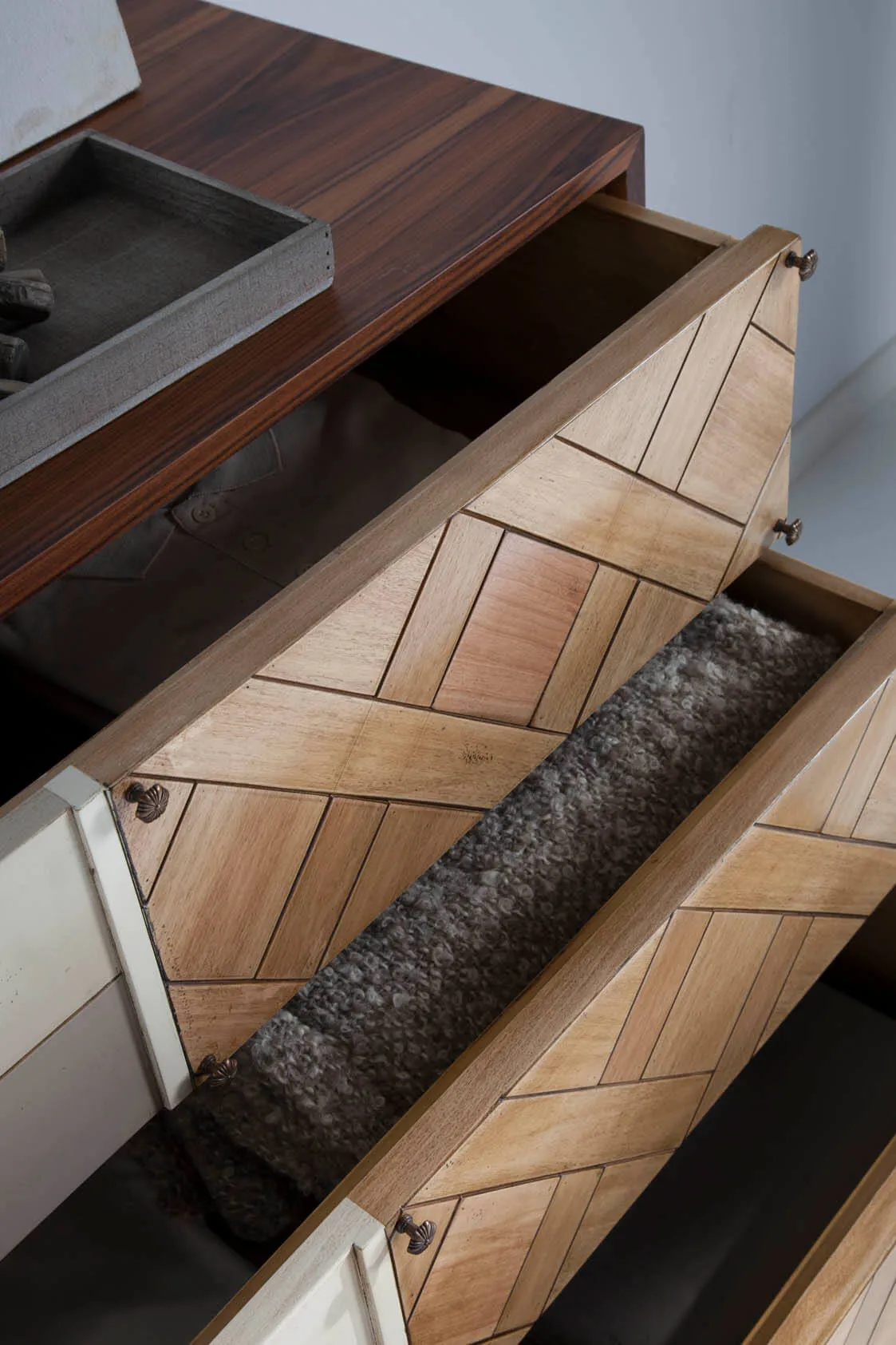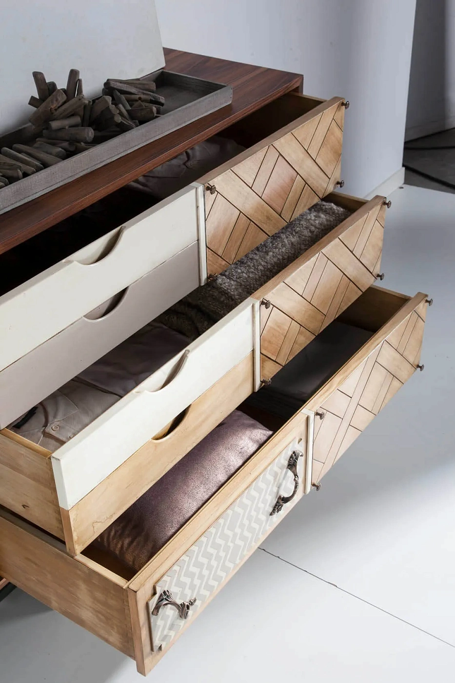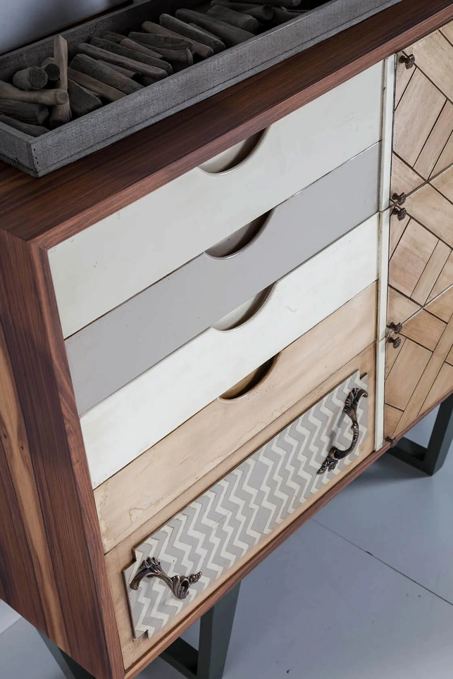 Комод Punk от испанской фабрики Lola Glamour изготавливается вручную из массива португальской вишни. В основе его дизайна лежит причудливое сочетания различных текстур, узоров, цветов и материалов отделки. Каждый ящик этого комода имеет свою дверцу и уникальную ручку на ней. Судя по всему, дизайн отдельных элементов комода Punk был навеян творчеством Сальвадора Дали. По желанию фурнитура, цвет и размер комода Punk (включая количество ящиков) могут быть изменены.