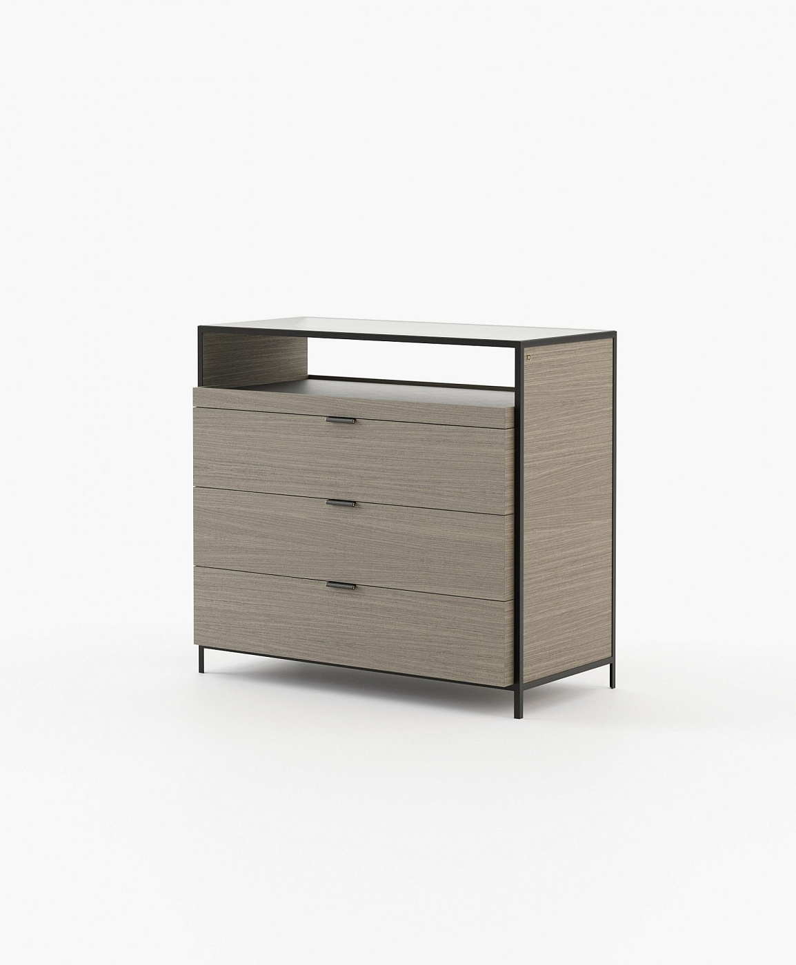 Комод Helvine с 3 ящиками из дубового шпона и закаленного стекла, 86 x 79