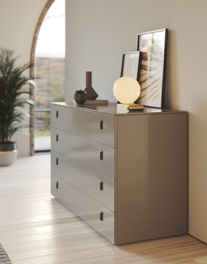 Отличительный комод с кожаными ручками, безусловно, современная идея для любой изысканной спальни. Его универсальность превращает любое пространство в современную и аутентичную дизайнерскую комнату.