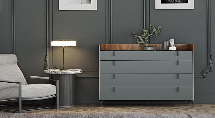 Комод TAO 4 единственным элементом современного дизайна в каталоге EMEDE. Он оснащен направляющими BLUM для закрывания с мягкой подкладкой. Как и в случае с complementos, добавьте боковые стороны и накладки из керамики, которые придадут группе дополнительную прочность.