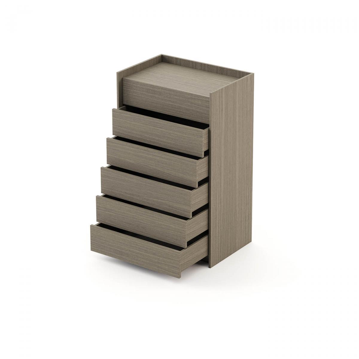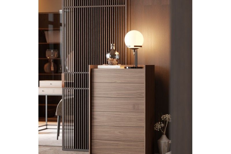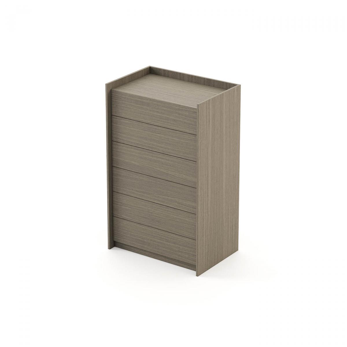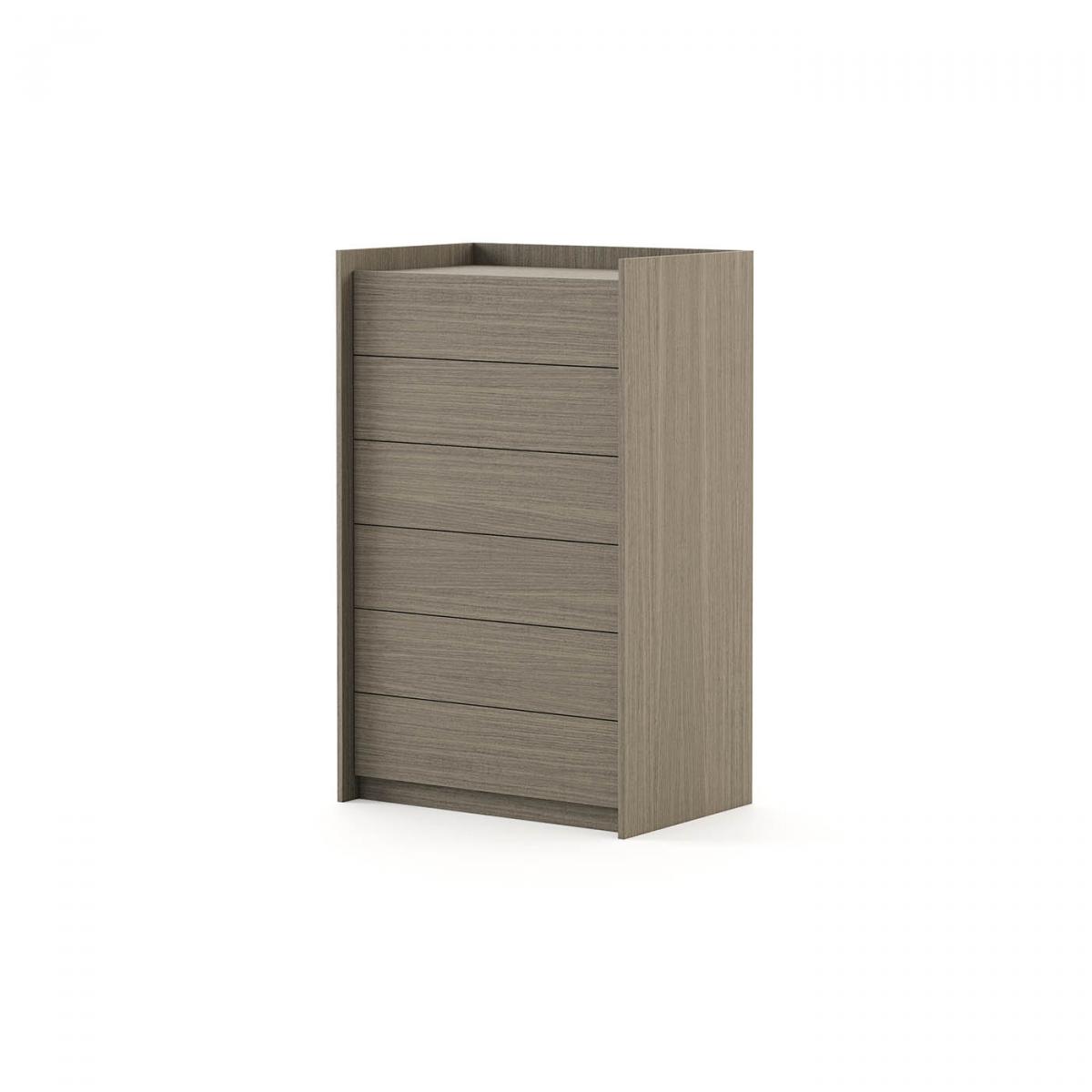 Высокий комод Endy с 6 выдвижными ящиками. Контуры изделия выступают за корпус необычным образом создавая нотку креатива в декоре спальни.