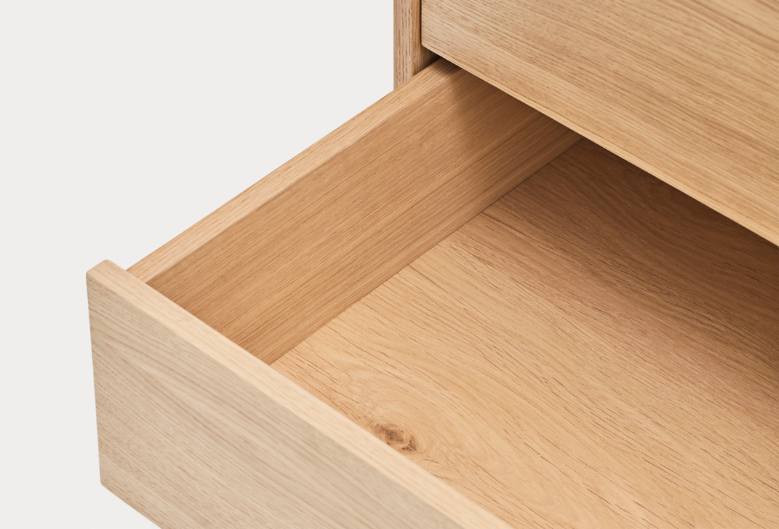 Комод Helvine с 3 ящиками из дубового шпона и закаленного стекла, 86 x 79