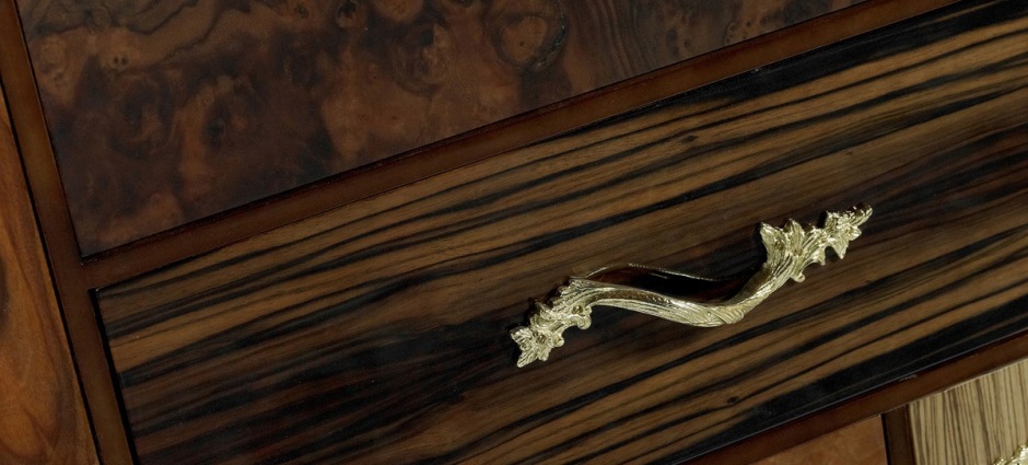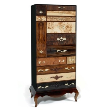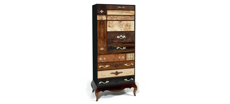 Высокий комод Queens от португальского бренда Boca do Lobo – это эксклюзивный предмет мебели, созданный специально для Вашей гостиной или спальни. Благодаря разнообразию экзотических пород дерева, яркой внешности и сильному характеру комод Queens заявляет о себе во всеуслышание. Насладитесь уникальной атмосферой, которую создает этот комод. Его корпус, как и корпус буфета Mondrian, изготовлен из стекла (обычного, бронзового или дымчатого). Дверцы ящичков отделаны шпоном из ценных пород дерева. Ручки комода могут быть отделаны золотом, серебром или медью.