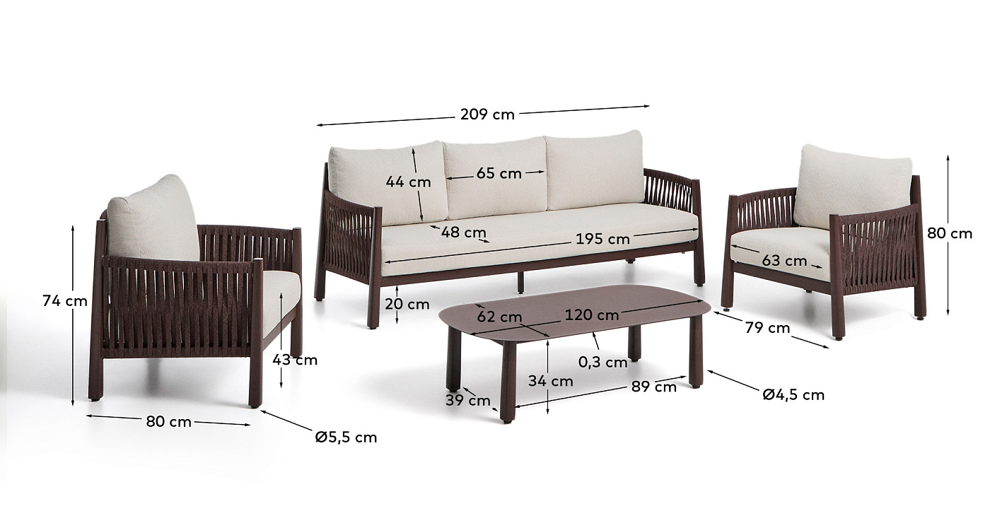 Комплект садовой мебели Aleria из коричневого алюминия и веревки