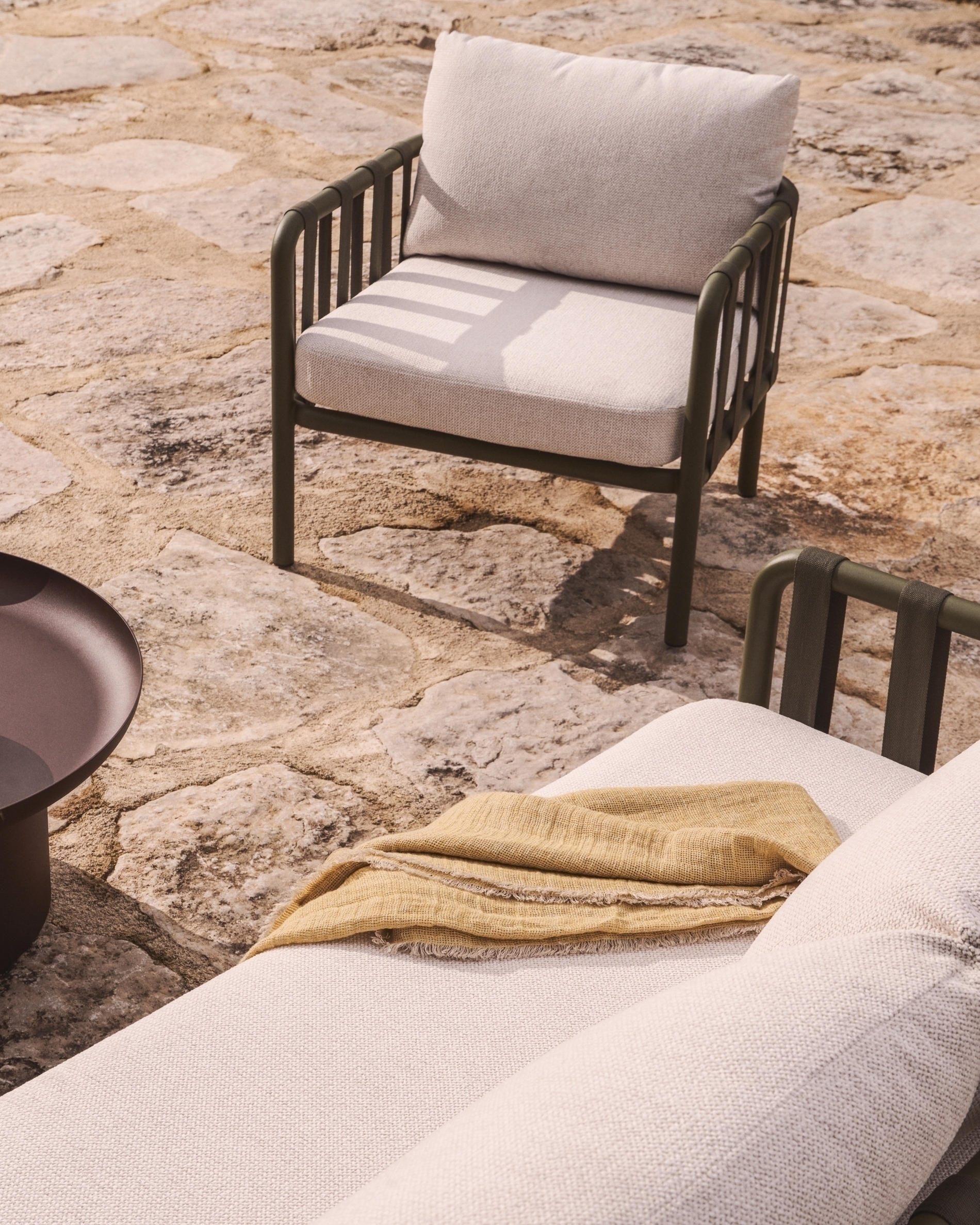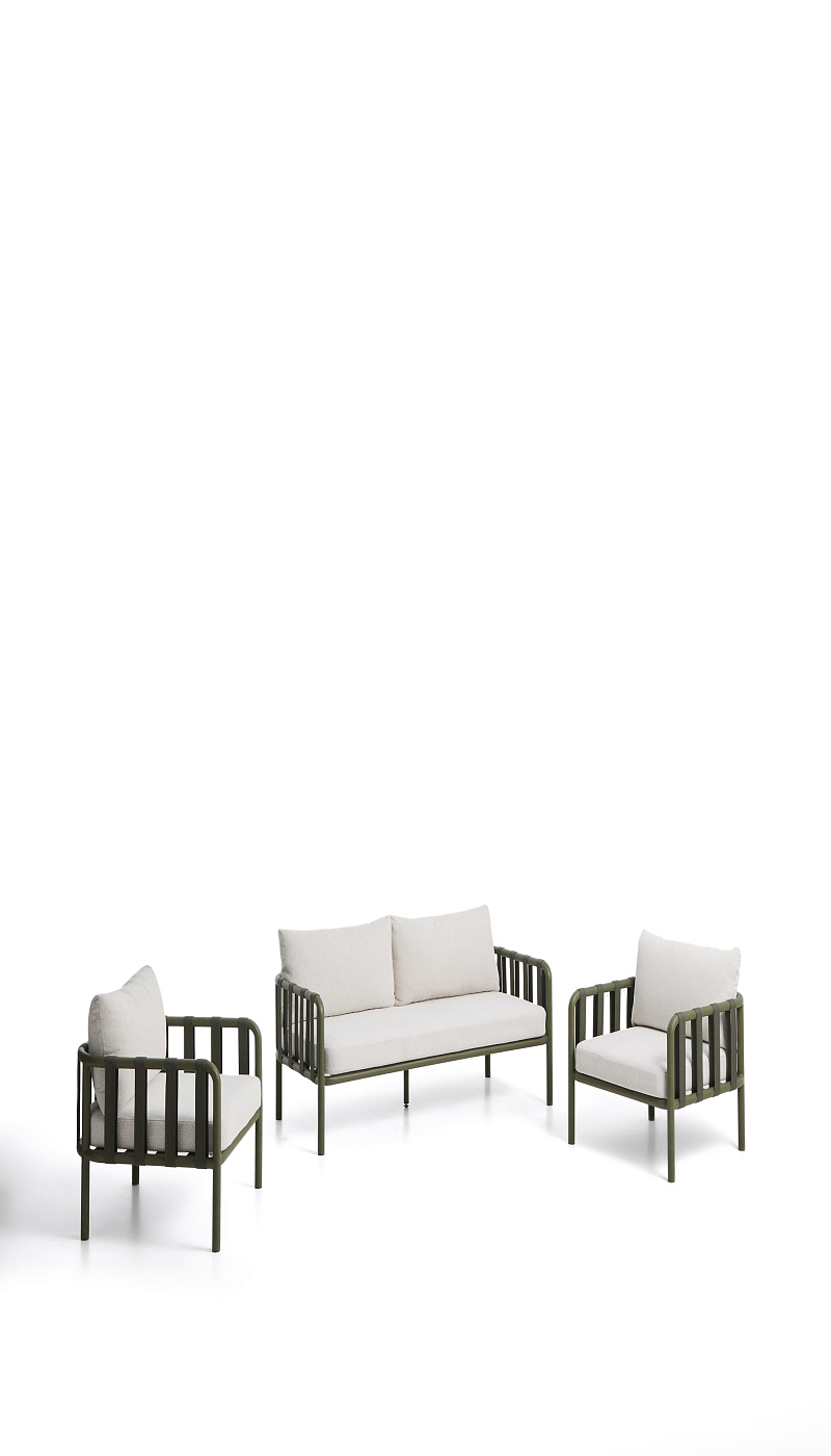Комплект уличной мебели Omala из зеленого алюминия и веревки