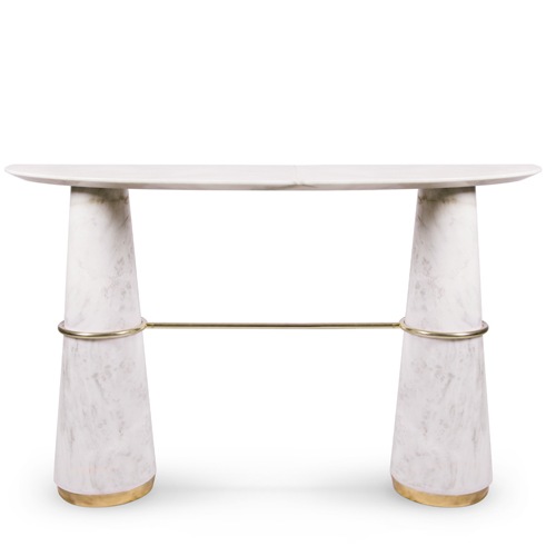 АГРА - это скромное место, где находится один из самых известных и знаменитых памятников в мире, Тадж-Махал, также известный как мраморный мавзолей. Консоль AGRA, как и Тадж-Махал, представляет собой впечатляющее проявление мастерства и элегантности. Его деликатная работа с прочным белым камнем смягчает внушительную структуру, а штрихи латуни отражают золотистые теплые тона на полированной поверхности.