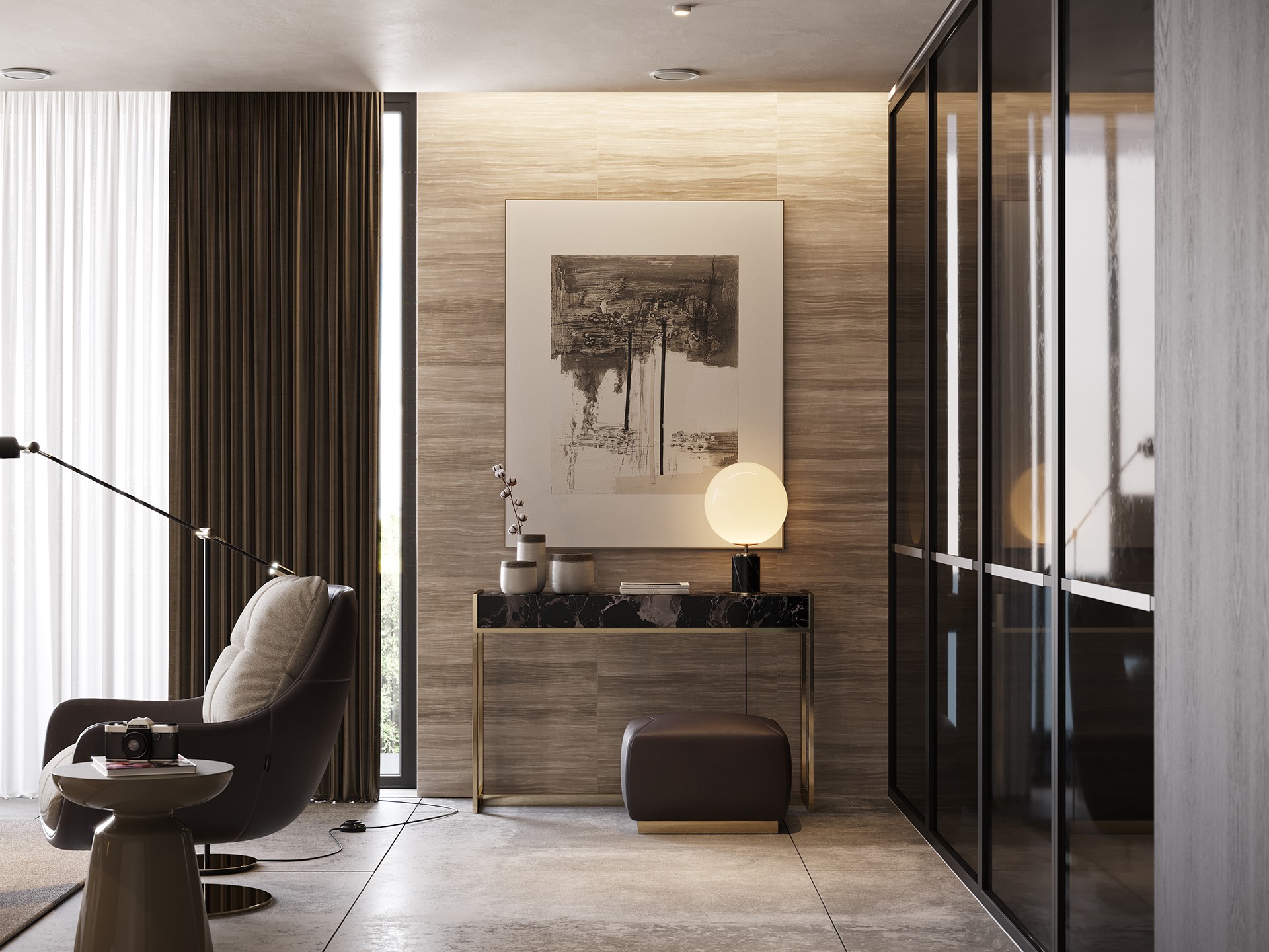 Anthony-это впечатляющая консоль, выполненная с мраморной столешницей и дополненная основанием из нержавеющей стали. Дерзкий верх приятно контрастирует с формой тонких и прямоугольных ножек.