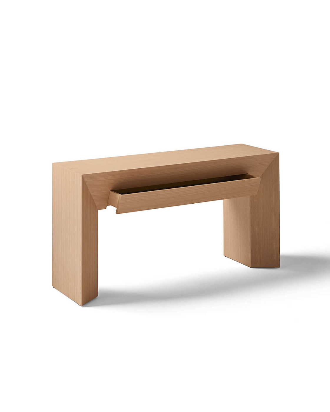 Коллекция консолей Axil поражает своим большим объемом и изысканной тщательностью изготовления деталей в своей конструкции. Он отличается элегантностью, сдержанностью и богатством отделки. Очень практичное и оригинальное решение, которое благодаря естественности отделки придает помещению тепло.консоль, изготовленная из лакированного МДФ или шпона из дуба. Очень практичное и оригинальное решение, которое благодаря естественности отделки придает помещению тепло.