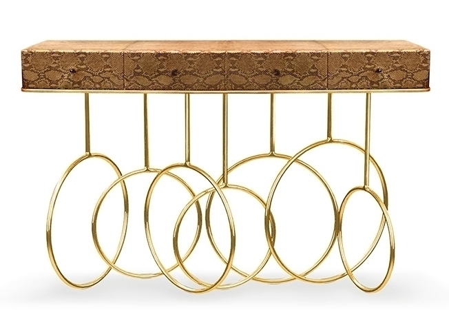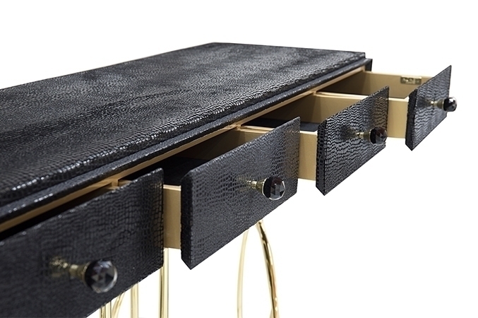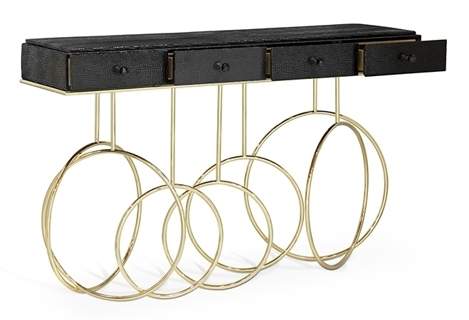 Консоль Burlesque поможет вам окунуться в ослепительный мир французских кабаре. Её блестящие окружности, экстравагантная отделка и чёрные кристаллы на каждом из четырёх ящиков ― все признаки дерзкой и страстной дивы налицо.