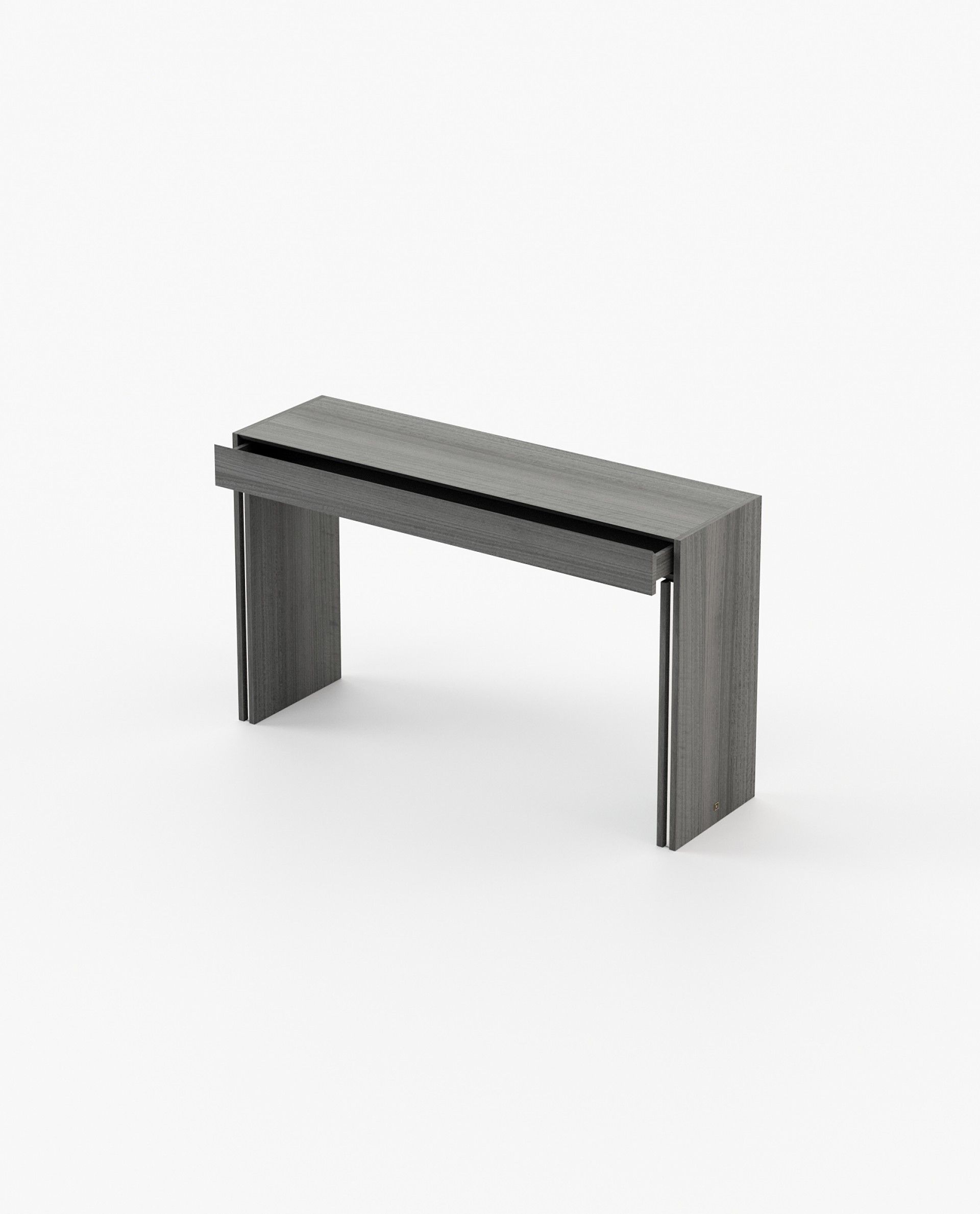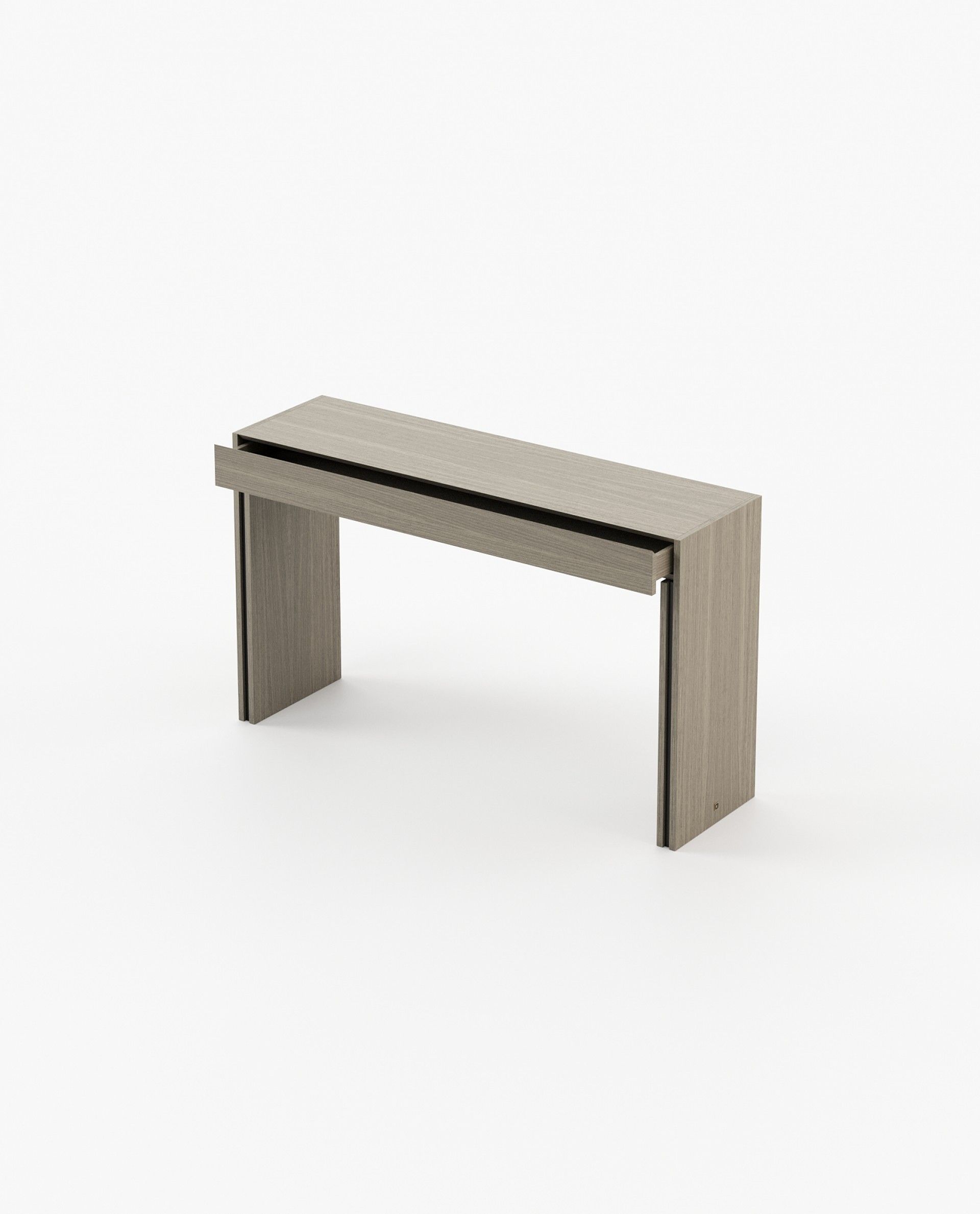 Ceuta Console — это минималистский консольный стол с одним ящиком, прочные прямоугольные ножки которого идеально выровнены со столешницей. Этот дизайн создает ощущение архитектурного интереса, позволяя прекрасному деревянному шпону занять центральное место, что делает его элегантным дополнением к любому изысканному интерьеру.