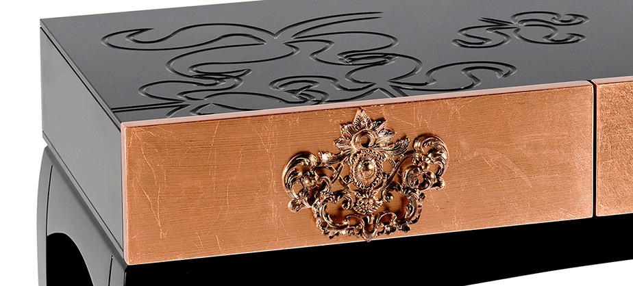 Trinity – это уникальная консоль, которая сочетает в себе яркий стиль и красоту деталей. Изысканный силуэт этой консоли позволяет с одинаковым успехом использовать ее и в качестве элемента декора и в качестве полноценного предмета мебели. Консоль Trinity это не только яркий образ – она способна создавать атмосферу роскоши, наполняя интерьер атмосферой успеха. Вдохновением для создания этой консоли стала классическая мебель, но, не смотря на это, Trinity не только отличается достаточно современным обликом, но и имеет собственную индивидуальность. Деревянные ящики консоли заключены в корпус из стекла, с нанесенным на него цветочным узором. Консоль доступна в нескольких вариантах отделки.