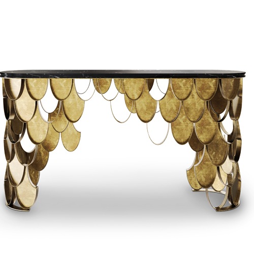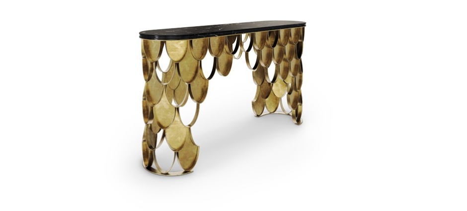 Карп КОИ - повторяющийся символ японской культуры, высоко ценимый за его декоративное назначение в водных садах, в практике Иредзуми или, чаще всего, в татуировках. Его естественные изменения цвета показывают их способность адаптироваться, как и латунный консольный стол KOI, который вписывается в любой современный интерьер. Шкалы KOI по бокам современного консольного стола сияют и отражают солнце на своей латунной поверхности. KOI имеет то же звучание, что и японское слово, обозначающее любовь и привязанность, что делает карпа также символом любви и дружбы, который будет передан в современный интерьер.