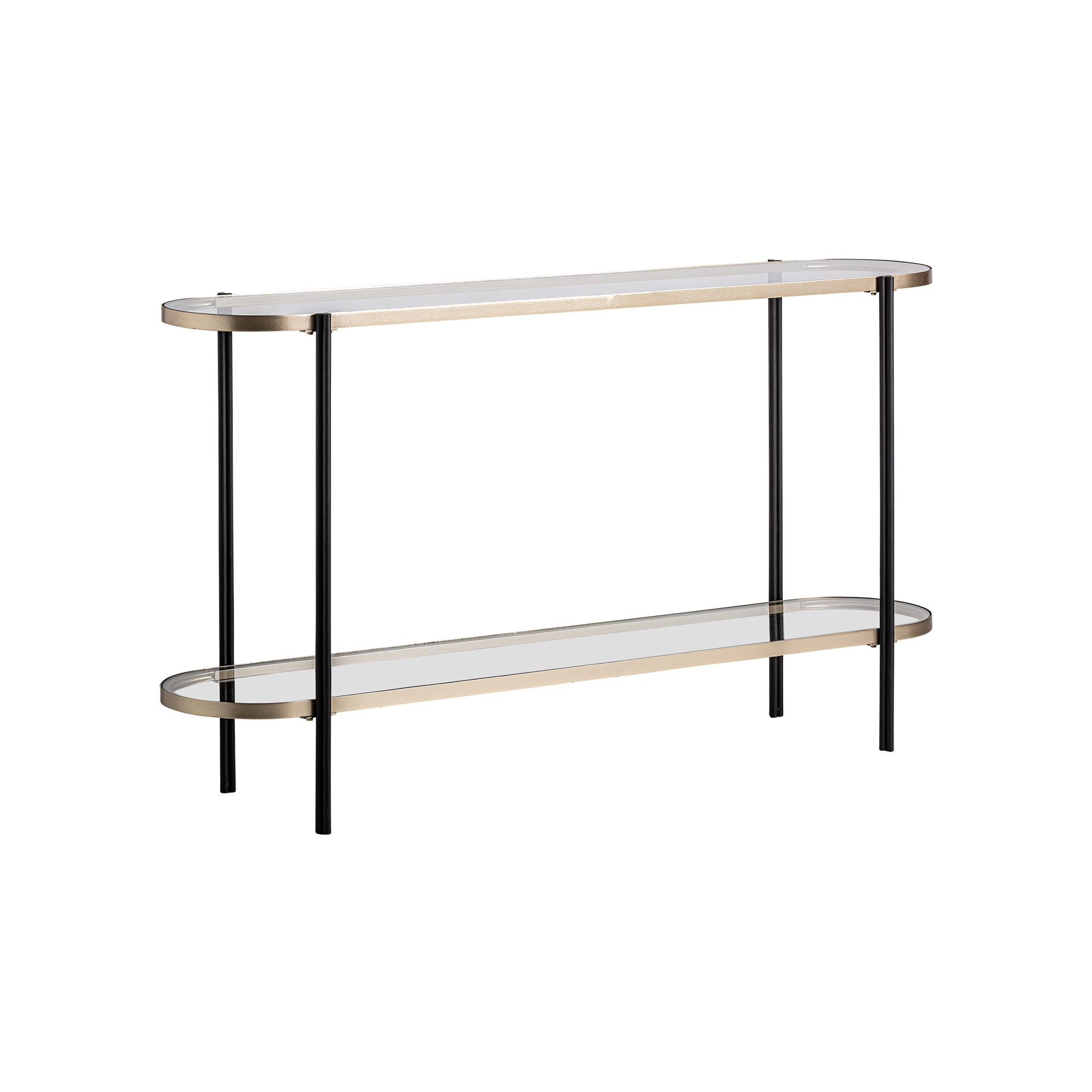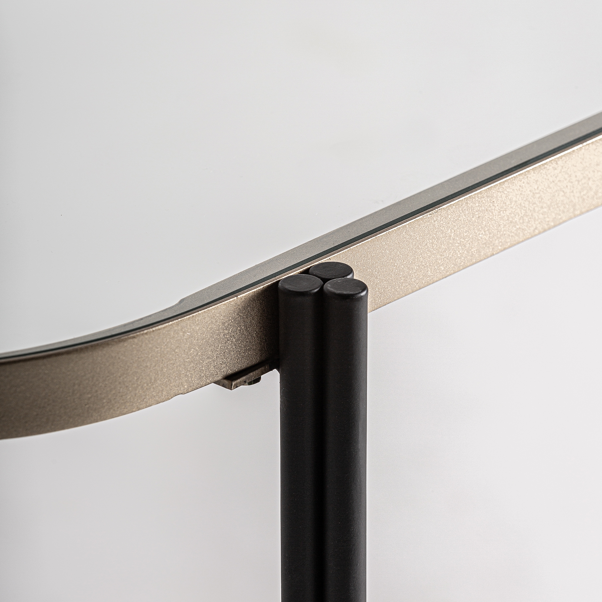 Консоль в стиле ар-деко. Изготовлен из железа, в черно-золотом цвете, в сочетании со стеклом. Изделие разборное.