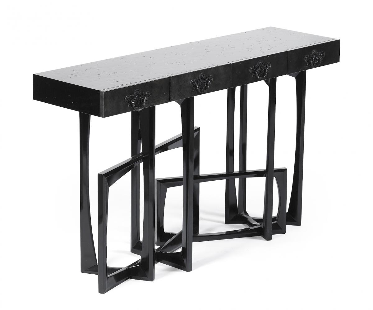 Консоль Metropolis от португальского бренда Boca do Lobo поднимает уровень дизайна и расширяет его возможности. Эта изящная консоль была создана специально для того, чтобы добавить шарма Вашей гостиной или холлу. В отличие от консоли Trinity, она имеет более сложную структуру основания. Консоль Metropolis изготовлена из массива красного дерева и доступна в нескольких вариантах отделки: золото, серебро, медь, черный или белый цвет. Консоль оборудована четырьмя выдвижными ящичками с ручками из полированной меди.