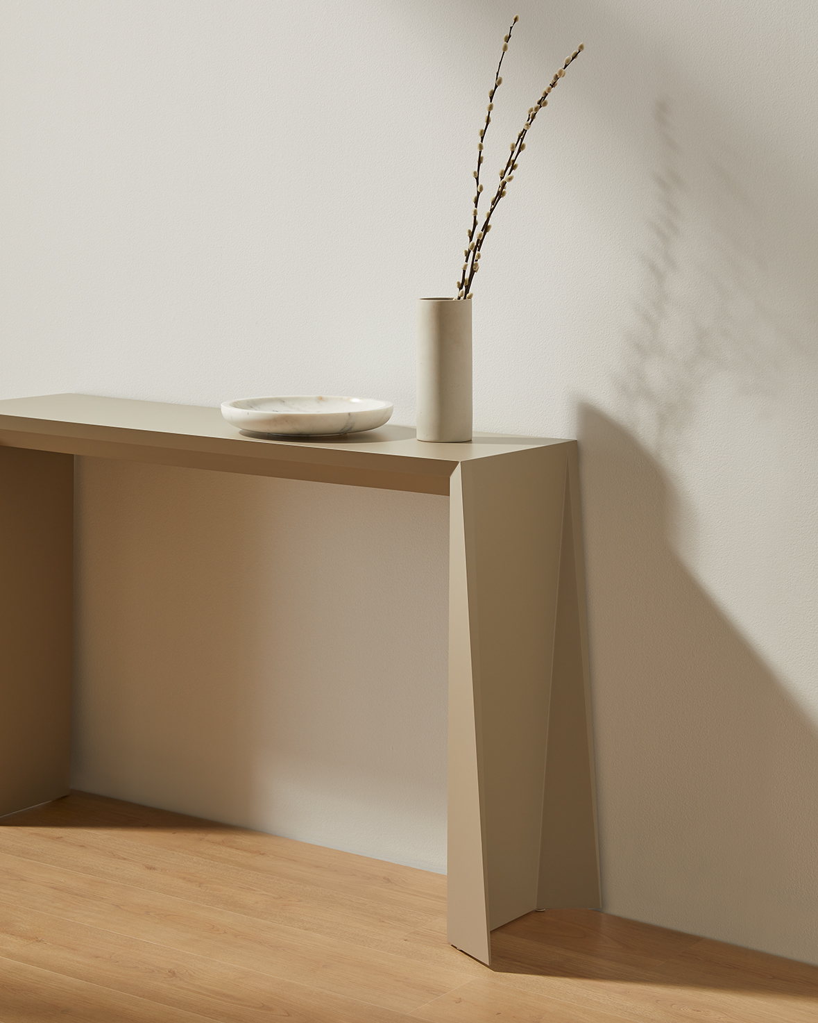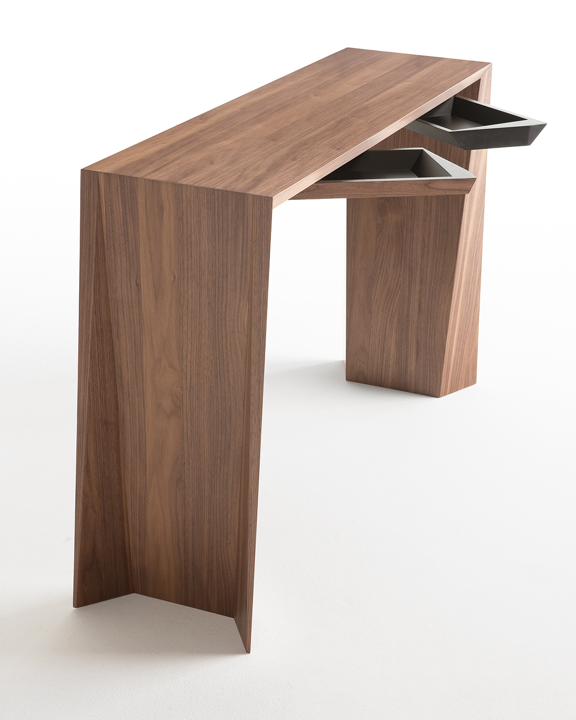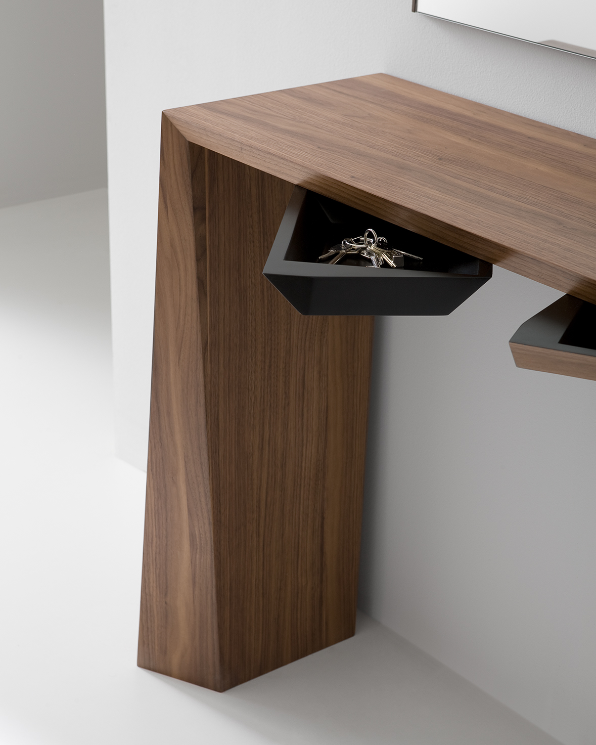 "Naruk - это коллекция, кажущиеся простыми линии которой открывают нам очень впечатляющую игру наклонных плоскостей. Он придает большое тепло помещениям благодаря своим благородным материалам, таким как орех, дуб или лак.