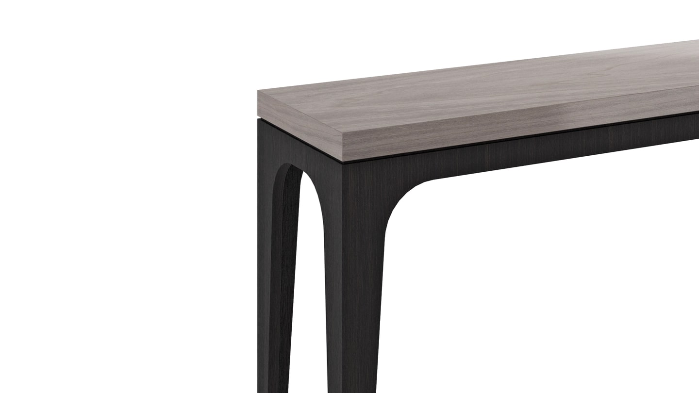 Дизайн одной из более тонких консолей NEW YORK столь же прямолинеен и стильен, как и город, в честь которого она названа. Изысканное сочетание серого и черного шпона из дерева, его аккуратный силуэт легко адаптируется к различным видам использования и пространствам.