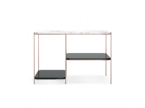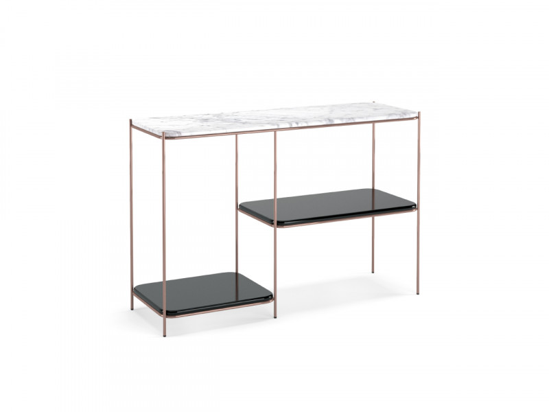 Консоль Stanley — это элегантный дизайнерский предмет, в котором тщательно сочетаются различные элементы в минималистичном стиле: мрамор, лакированное дерево и плакированная нержавеющая сталь, что делает их достойным дополнением к любому холлу или гостиной.