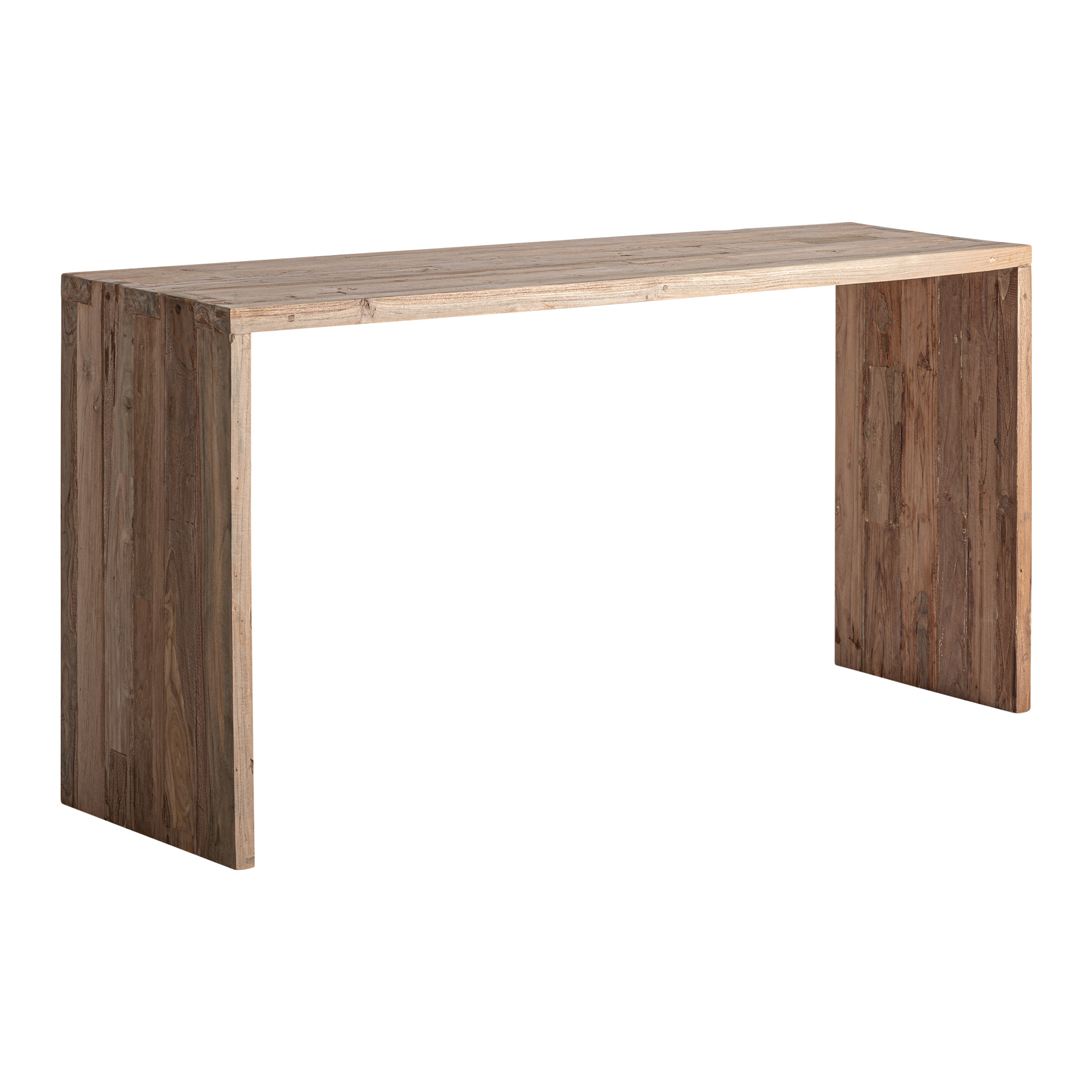 Консольный столик Helmond в деревенском стиле, изготовленный из переработанной тиковой древесины коричневого цвета. Ширина: 180 см, Глубина: 45 см, Высота: 85 см