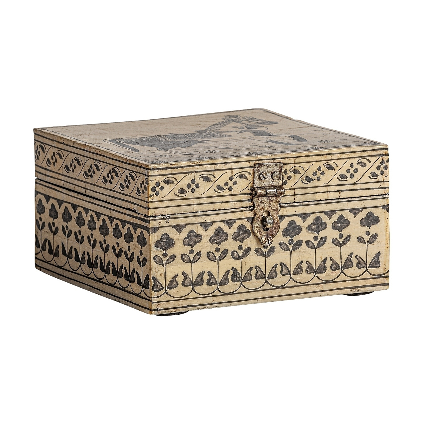 Квадратная коробка Neal, бежевого цвета, в стиле арт-деко. Изготовлен из смолы.