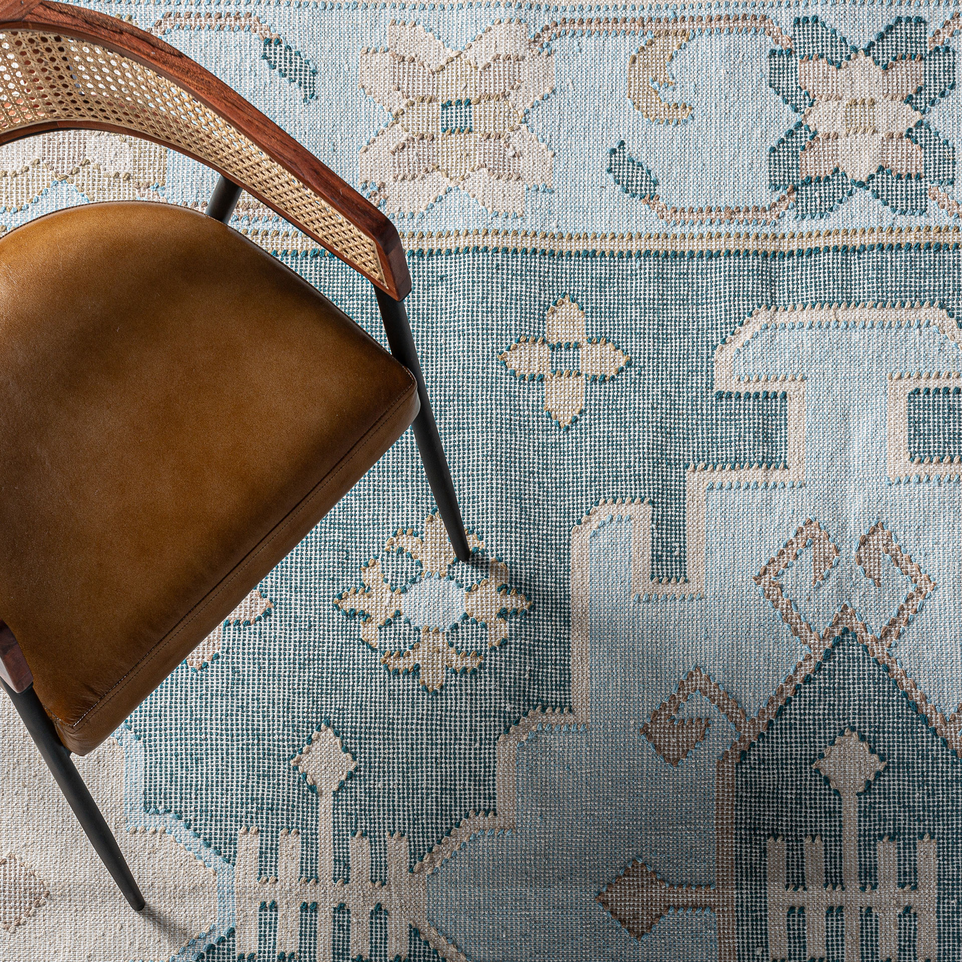 Ковер Elisea, в оттенках синего, в колониальном стиле. Сделано в ПЭТ.