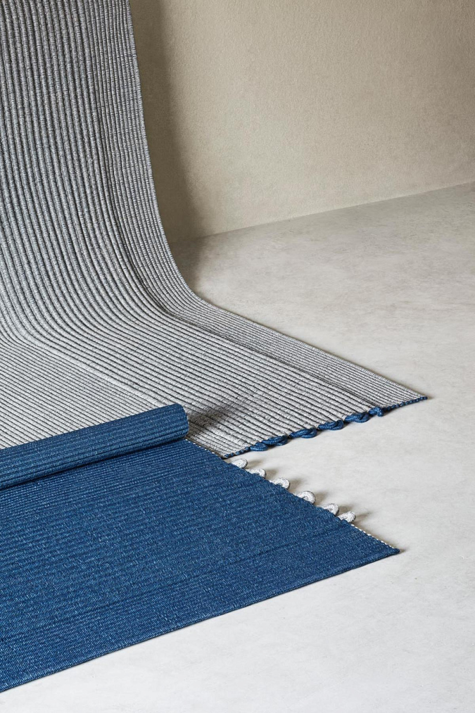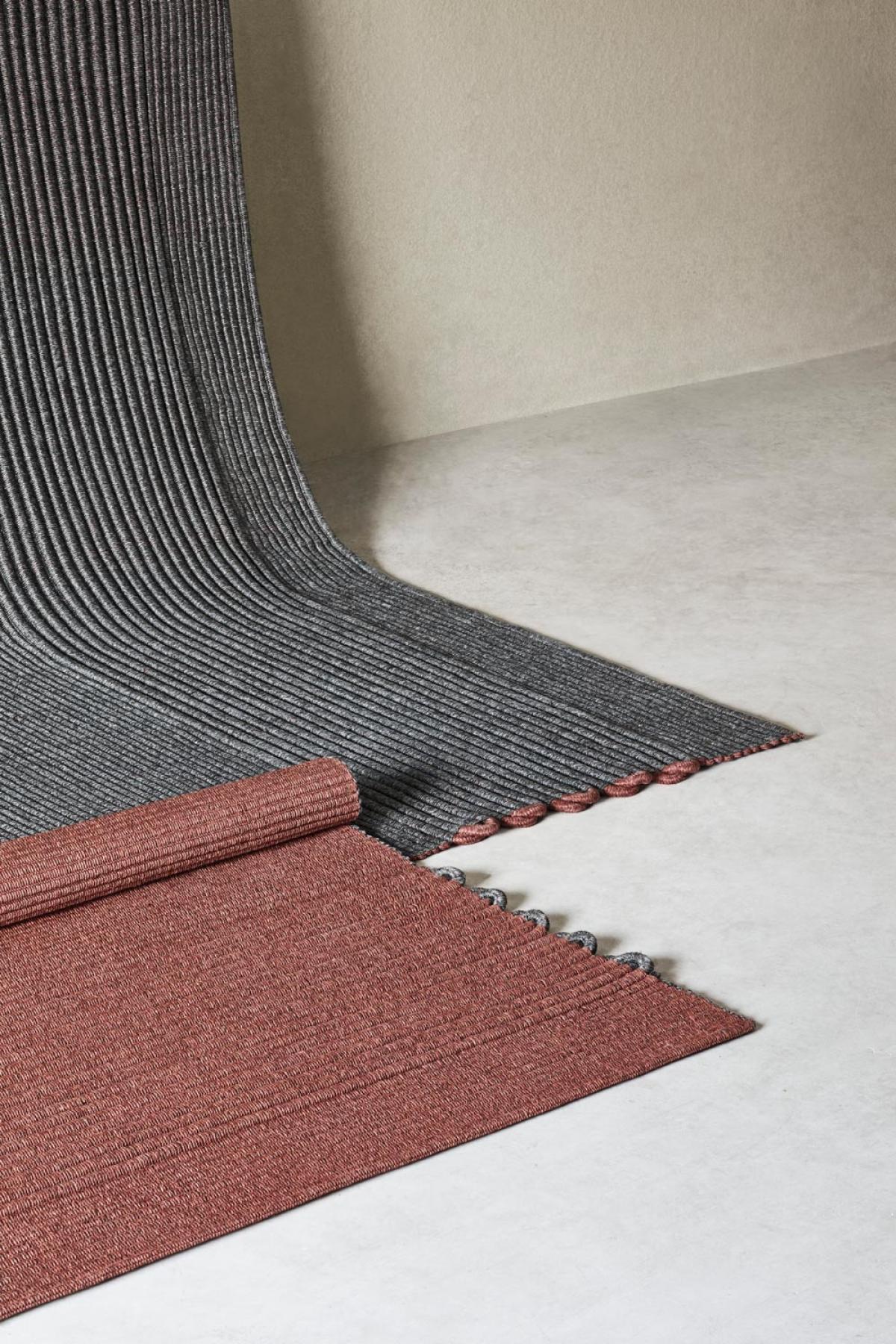 Ковер изготовлен из смеси плетеных полипропиленовых канатов. Основание оплетено веревкой толщиной 3 мм / 0,12 дюйма, а декоративная полоса-веревкой толщиной 16 мм/ 0,62 дюйма.