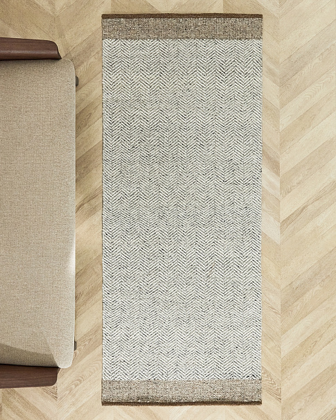 Бежевый шерстяной жаккардовый ковер Nifelia 200 x 80 см